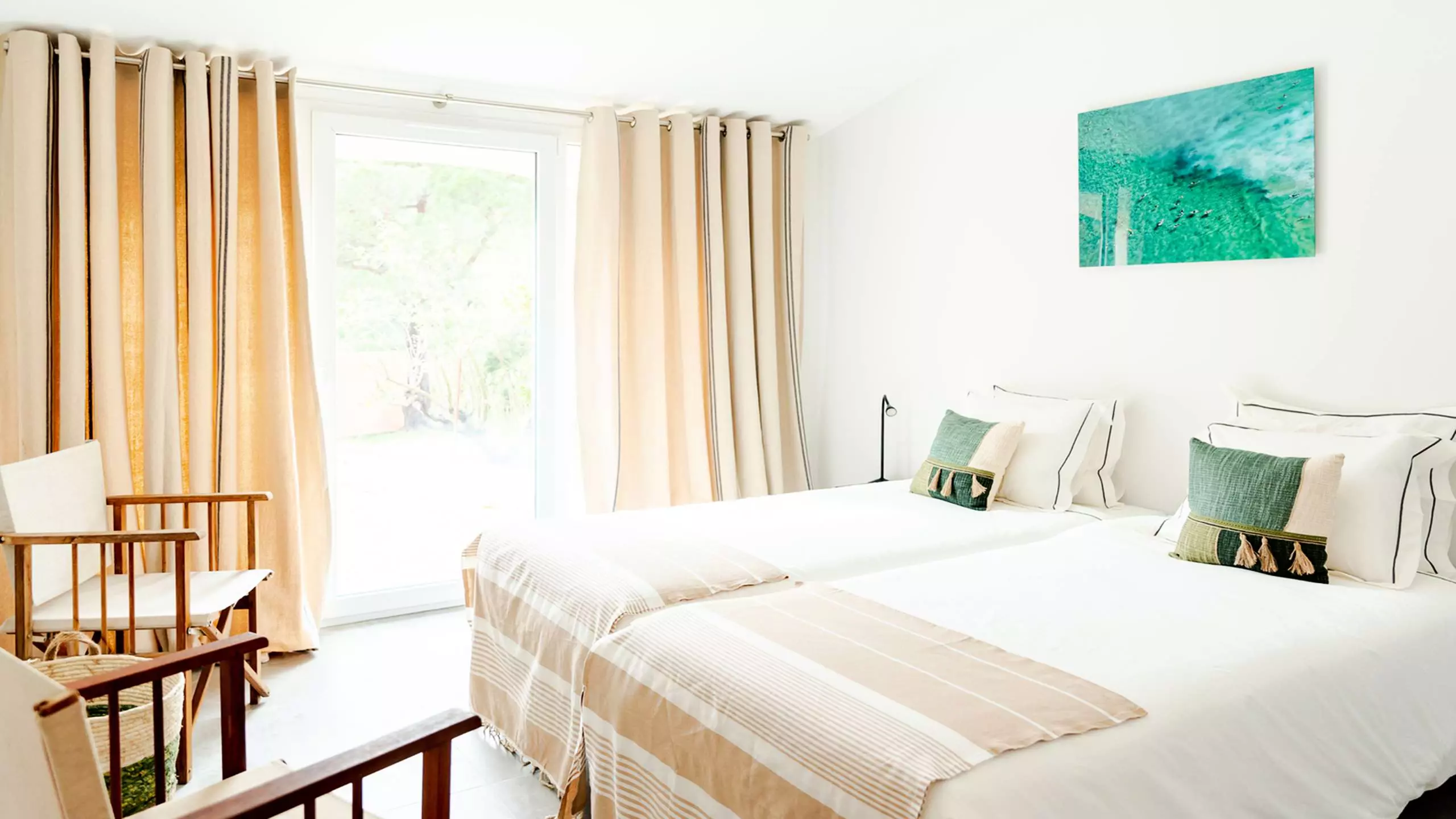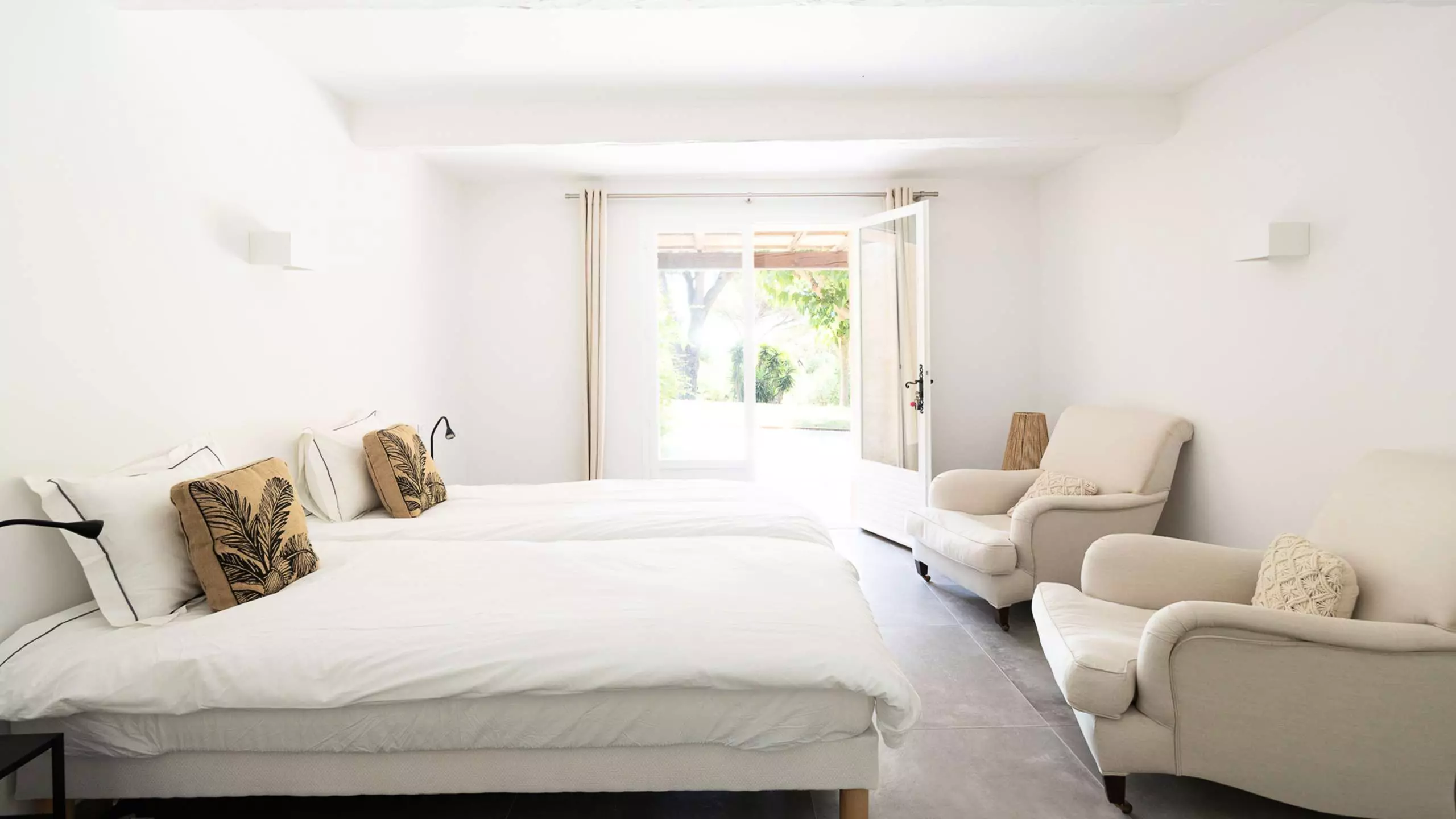 - Chambre Grimaud 13m² climatisée : 2 lits simples 90x200 ou 180x200 - Vue et accès sur le jardin