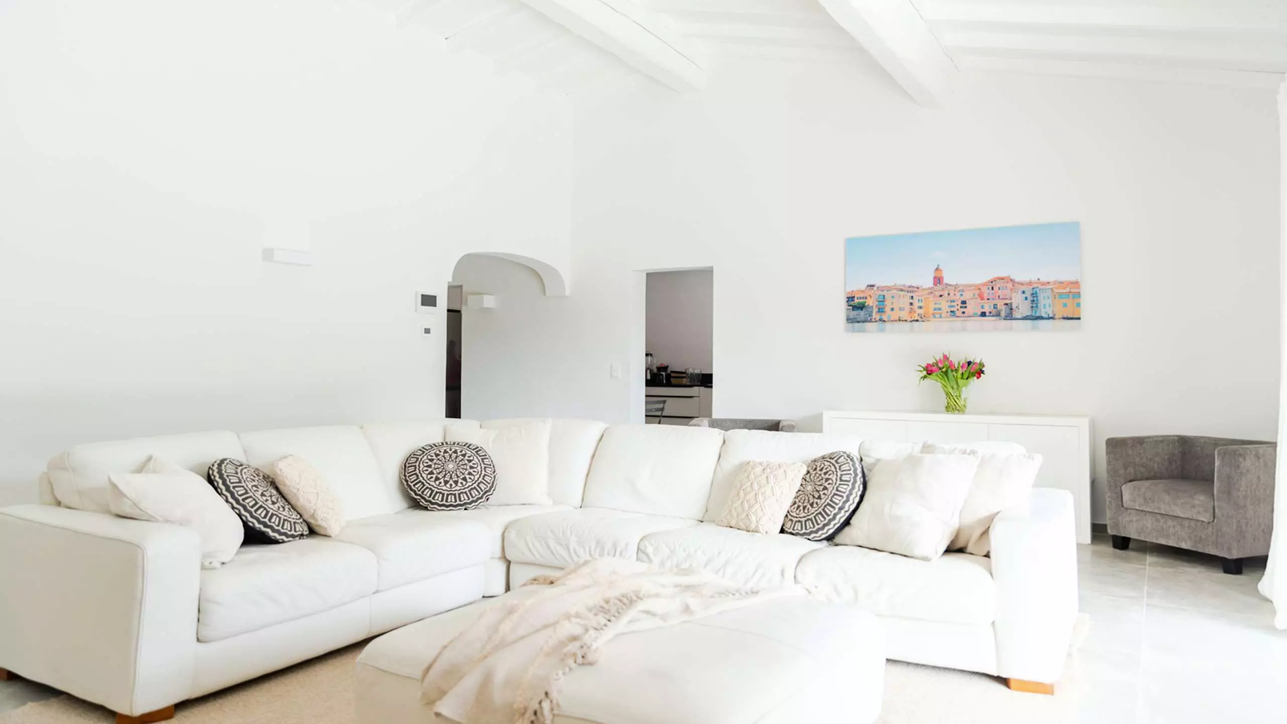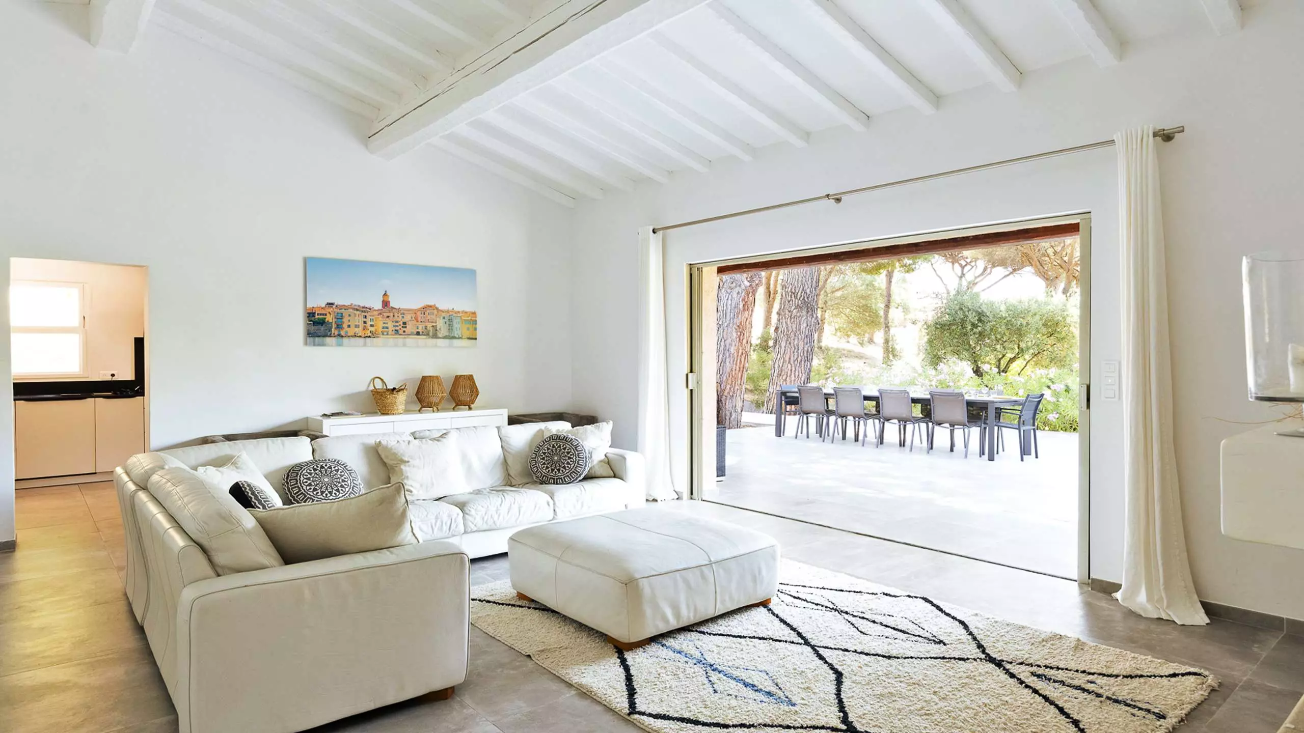 - Grande pièce à vivre donnant sur la terrasse de 150 m², télévision dans le salon, wifi