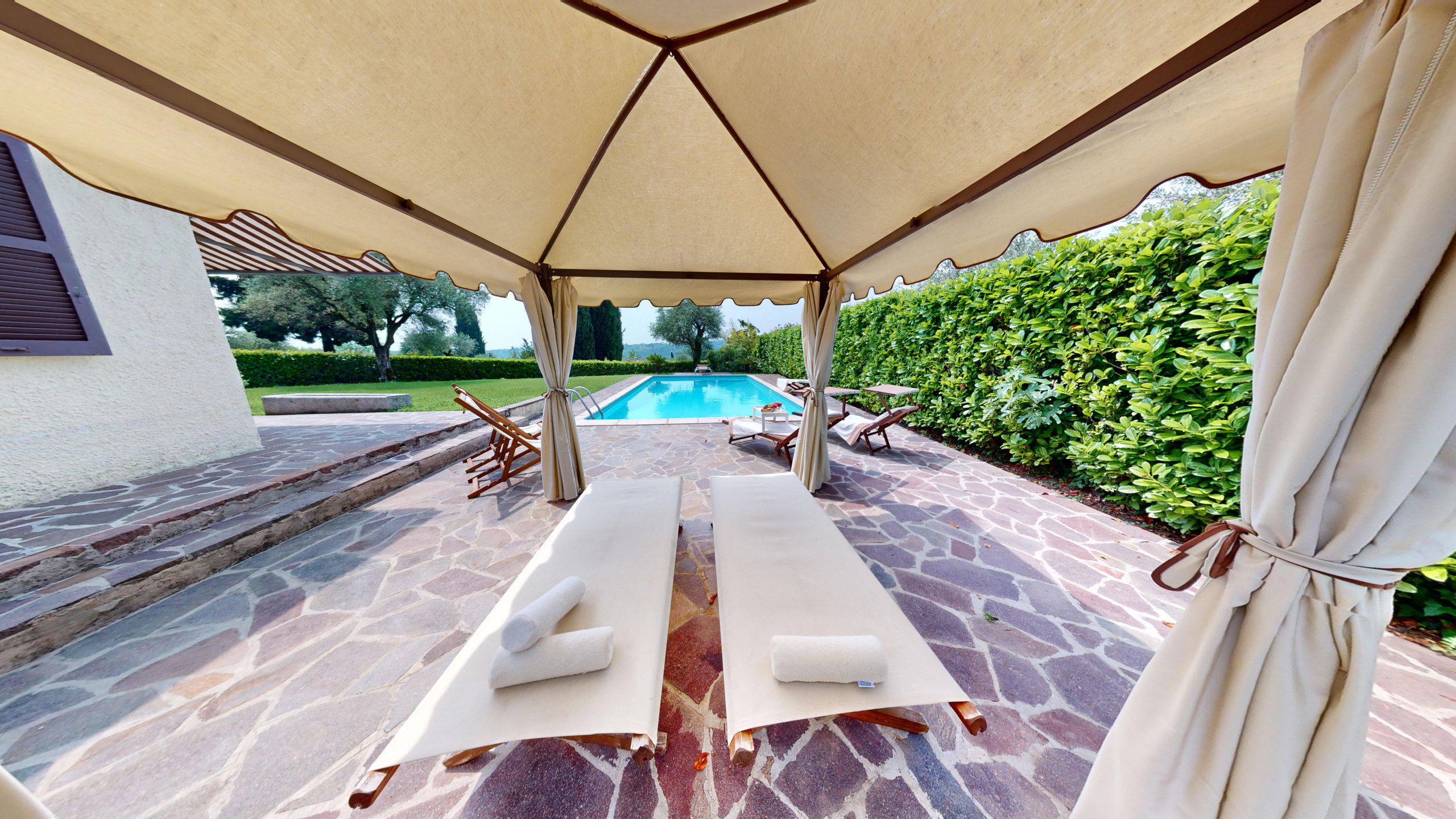 Les espaces extérieurs sont équipés de chaises longues et de pergolas pour des moments de pur détente et de plaisir sous le soleil estival.