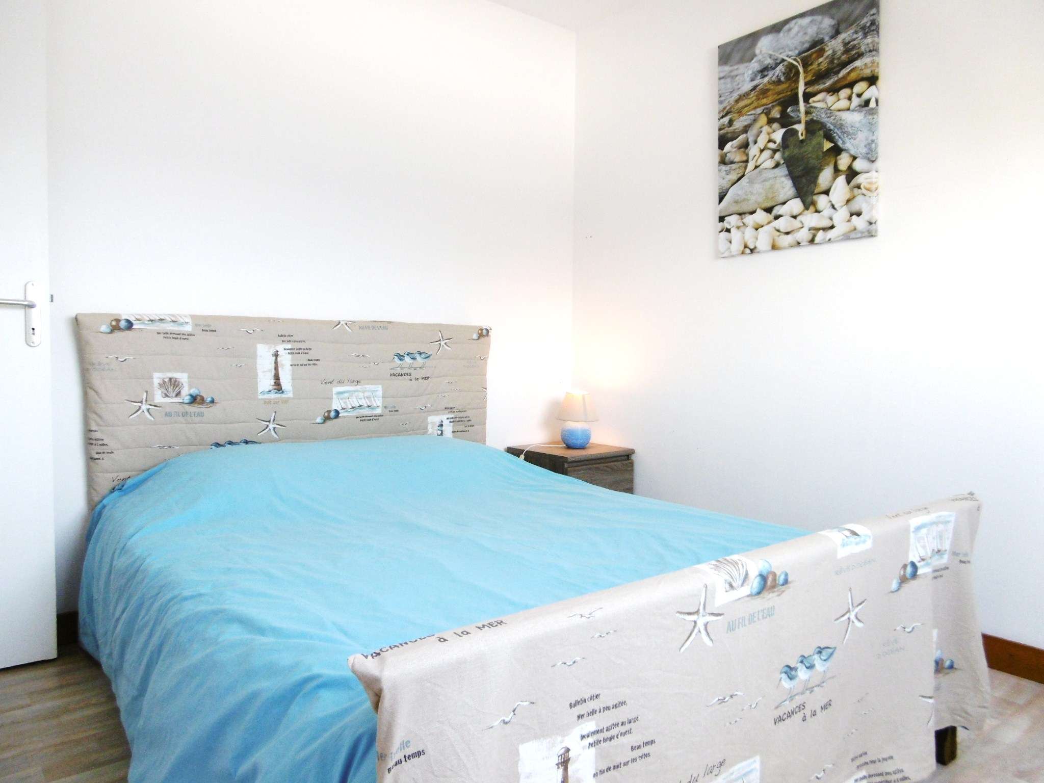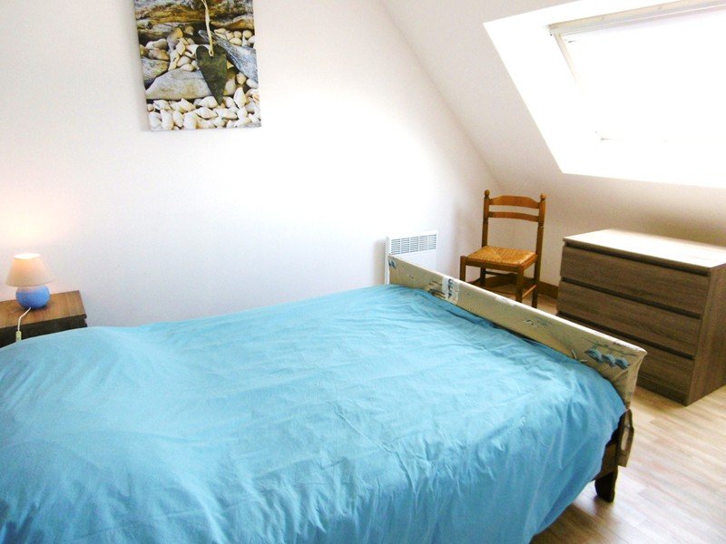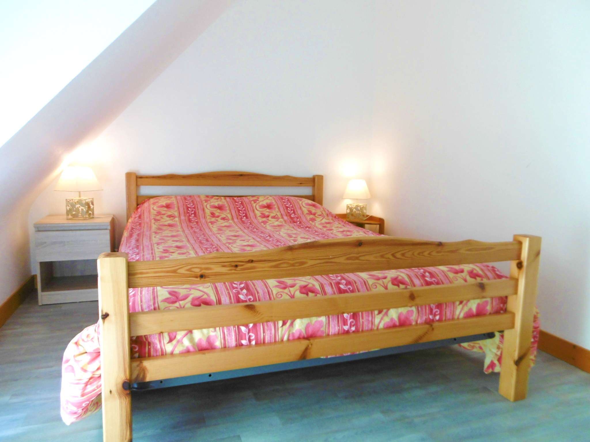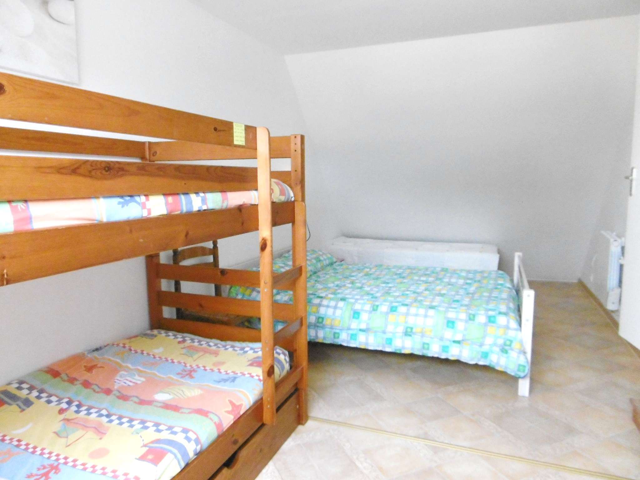 - Une chambre avec des lits superposés, un lit double en 140 cm + un lit simple en 80 cm
