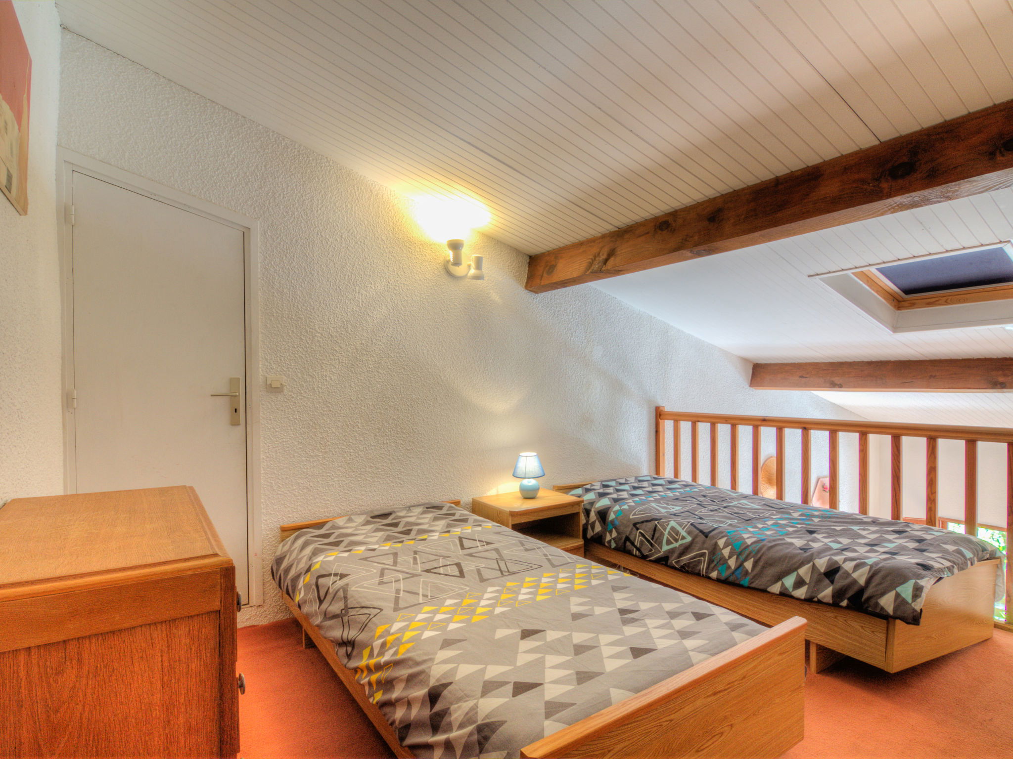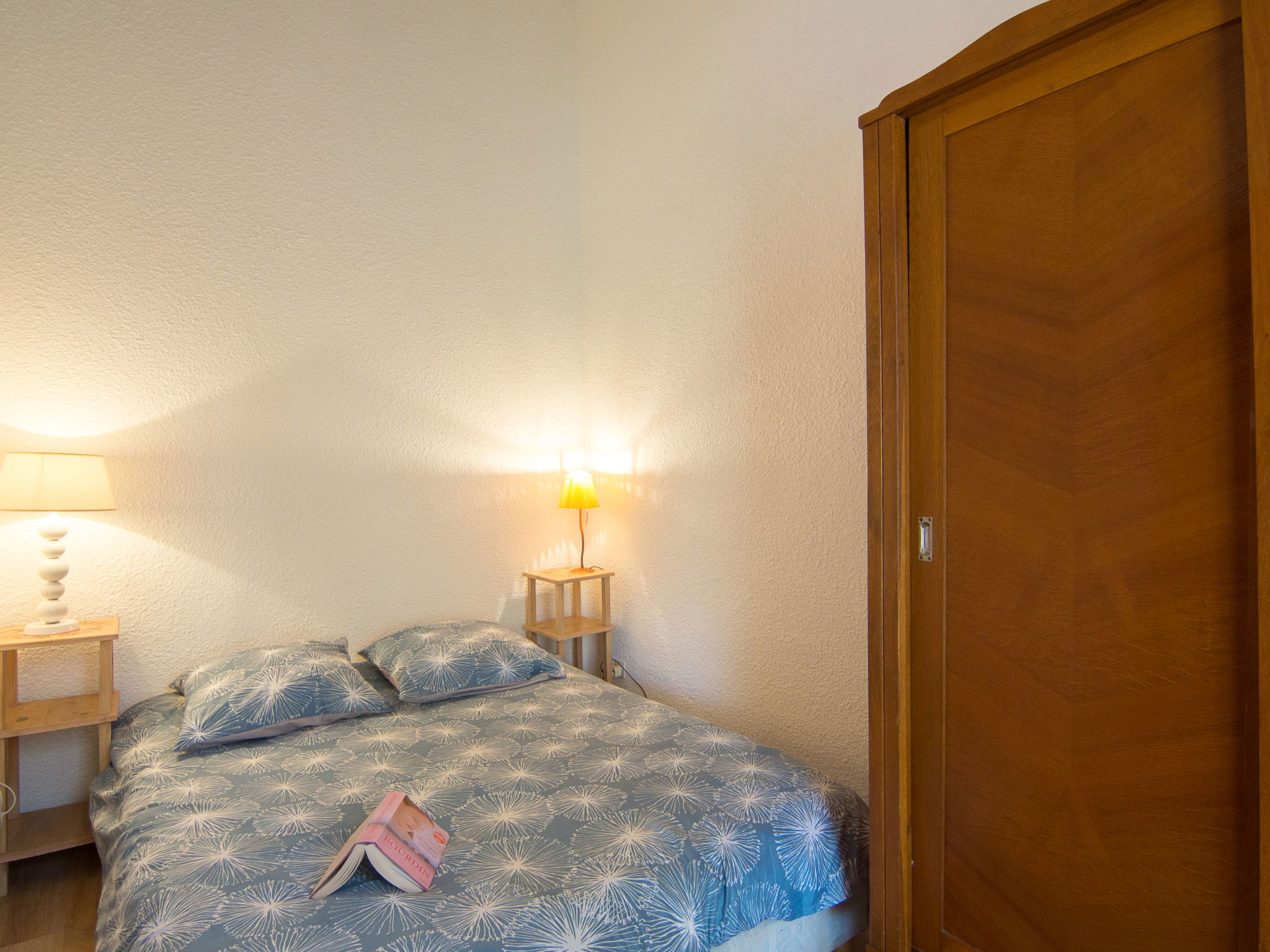 Maison 2 pièces 45 m2 sur 2 niveaux, situation sud. Séjour/salle à manger avec écran plat. 1 chambre avec 1 grand-lit (140 cm, longueur 190 cm). Coin cuisine (4 plaques de cuisson, four, lave-vaisselle, micro-ondes, congélateur). Douche/WC. Chauffage électrique. À l'étage supérieur: galerie ouverte avec 2 lits (90 cm, longueur 190 cm). Terrasse. Meubles de terrasse. A disposition: lave-linge. Veuillez noter: maximum 1 animal/ chien autorisé. Détecteur de fumée. Veuillez noter que la galerie donne sur le séjour. WIFI non disponible. Au lieu d'une chambre fermée, des espaces de couchage sont situés dans une zone ouverte (galerie, alcôve...). 402960000575V