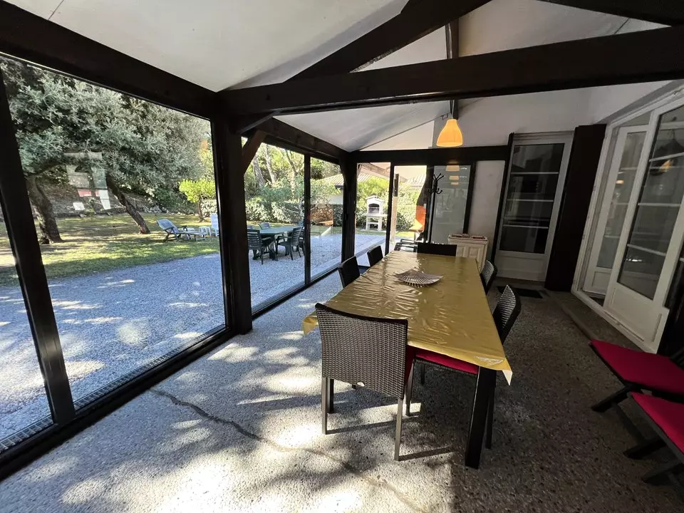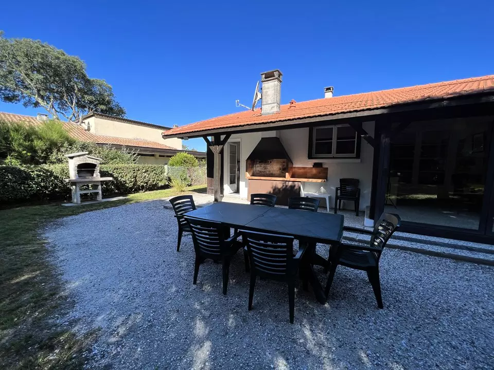 Idéalement placée cette maison avec son grand jardin arboré se trouve à 350m de la plage des Arros. Elle se compose de 4 chambres toutes équipées de rangements dont 1 parentale avec 1 lit en 140cm, 2 autres chambres avec 1 lit en 140cm, 1 autre chambre avec 2 lits en 90cm, 1 cuisine tout équipée, 1 salon/séjour, 2 WC, 1 belle véranda avec vue sur le jardin. Internet. Barbecue. Rangement vélos. Salon de jardin. Maison équipée pour accueillir des enfants en bas âges. Caution à régler sur place. Chèques vacances acceptés.