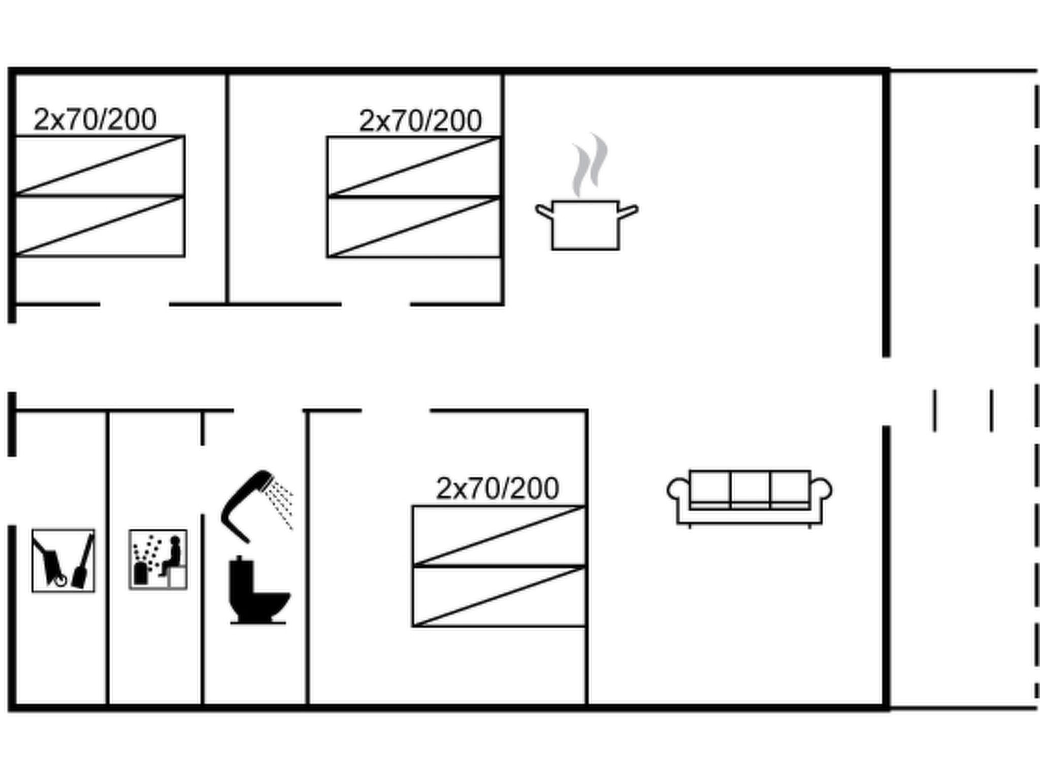 "Brunhild" - 29km from the sea", maison 3 pièces 73 m2. Logement idéal pour 6 adultes + 1 enfant. Séjour avec TV et radio. 1 chambre avec 1 lit double. 1 chambre avec 1 lit double. 1 chambre avec 1 lit double. Cuisine (four, lave-vaisselle, 4 plaques vitrocéramiques, micro-ondes, congélateur). Douche/WC. A disposition: chaise haute pour enfant, lit bébé. Internet (Connexion WIFI). Veuillez noter: logement non-fumeur. Maximum 1 animal/ chien autorisé. 550-22929