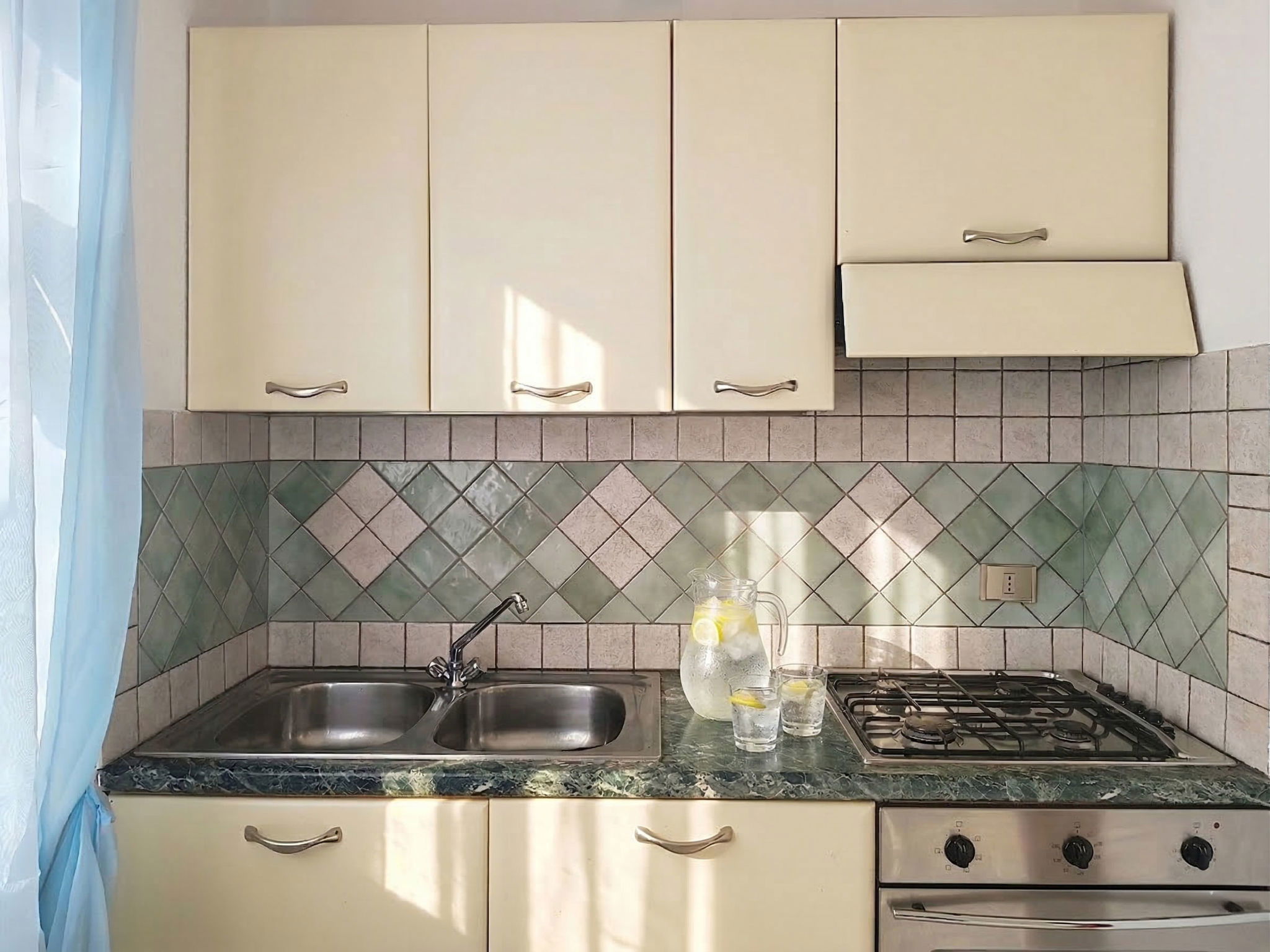 "Papaia", maison mitoyenne 4 pièces 148 m2 sur 2 niveaux. Aménagement agréable et de style: séjour/salle à manger avec TV (écran plat), chaîne stéréo. Sortie sur le jardin, sur la terrasse. Cuisine (four, 4 feux, grille-pain, bouilloire électrique). Douche/bidet/WC. Air-conditionné. À l'étage supérieur: 2 chambres, chaque chambre avec: 2 lits doubles et air-conditionné. 1 chambre avec 1 lit, 1 lit double et air-conditionné. Bain/bidet/WC. Petite terrasse. Meubles de terrasse. Belle, sur le jardin. A disposition: lave-linge, fer à repasser, sèche-cheveux. Internet (Connexion WIFI, gratuit). Place de parking près de la maison. Veuillez noter: adapté(e) aux familles. Maximum 1 animal/ chien de petite taille autorisé. Extincteur. IT000000C0000T0000
