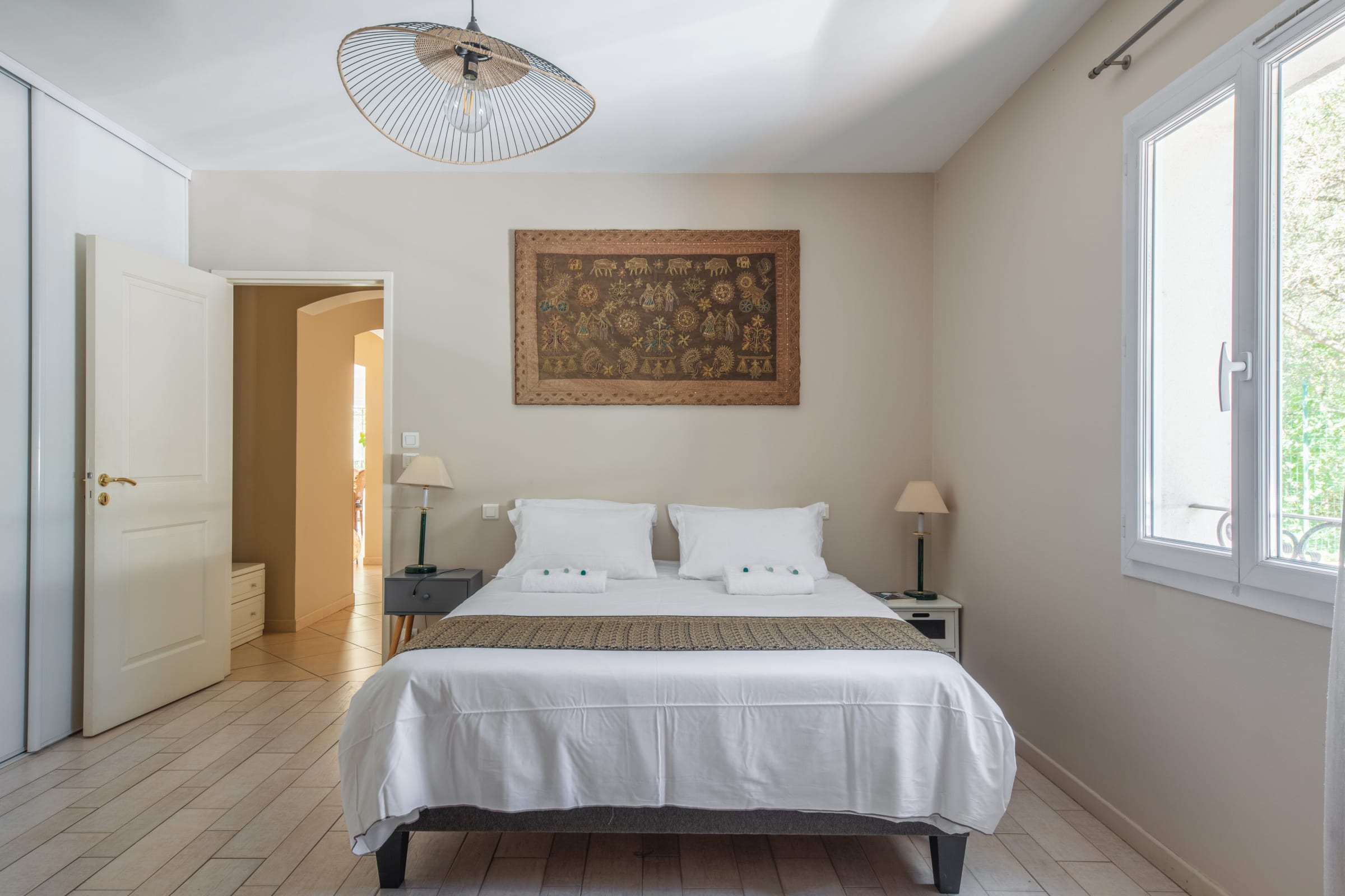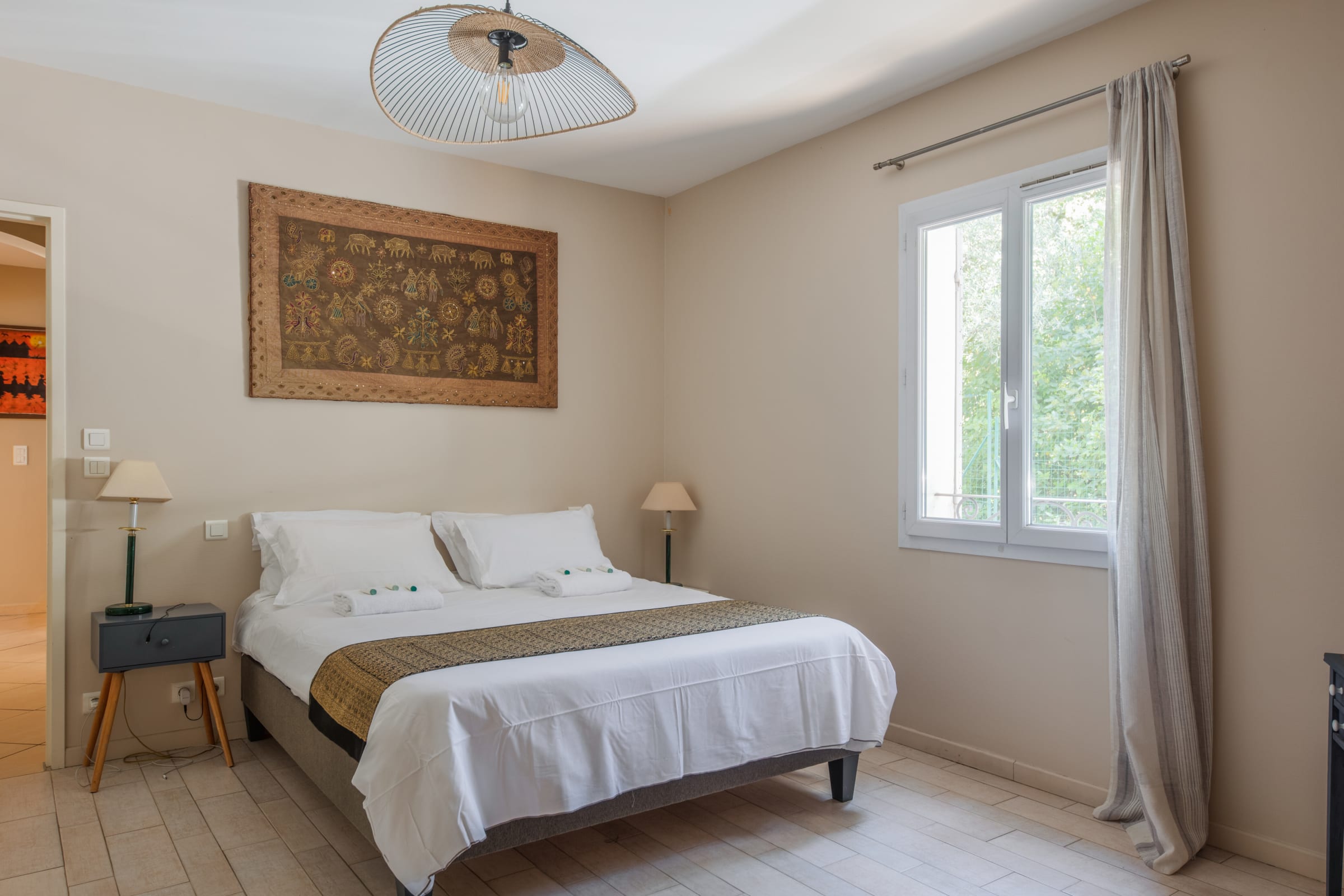 - deux grandes chambres avec lits queen-size (160cm),