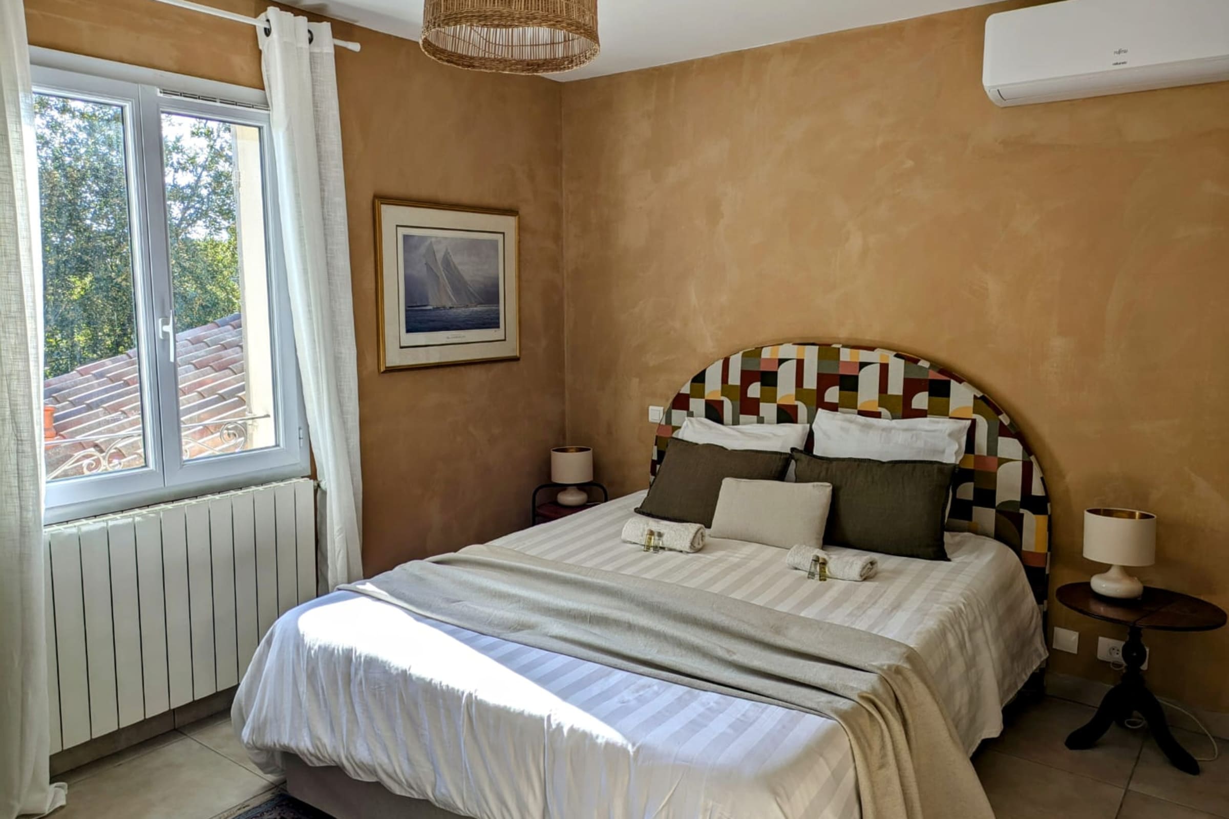 - deux grandes chambres avec avec un lit double pouvant être configuré en 2 lits simples (à nous préciser à la réservation),