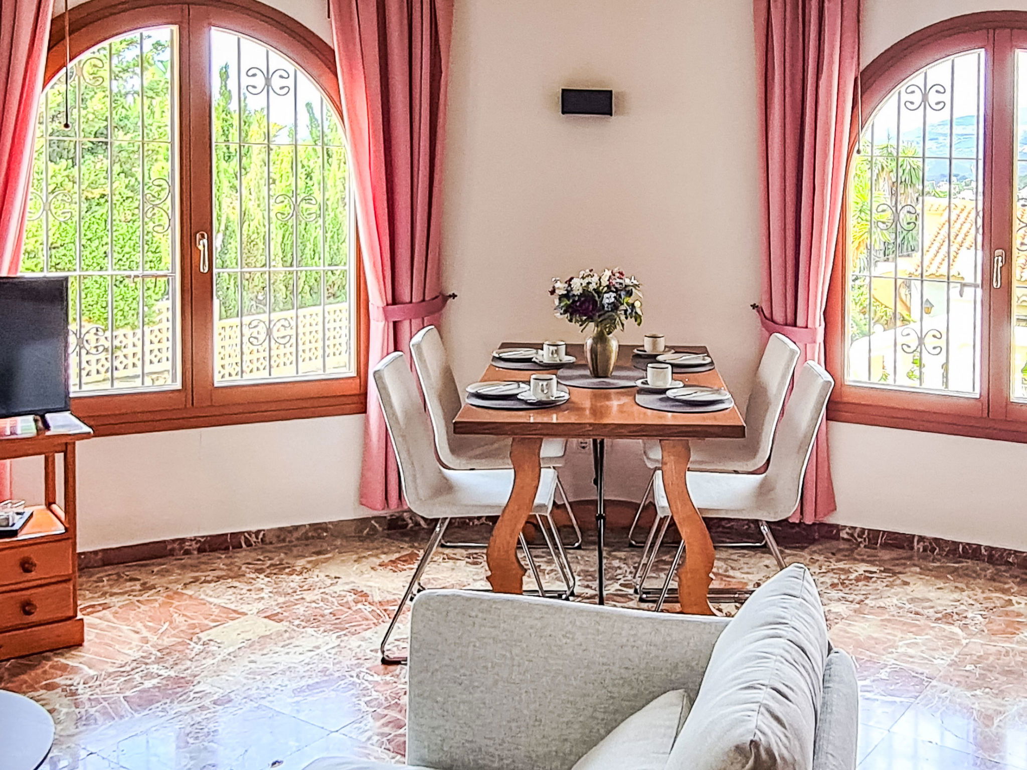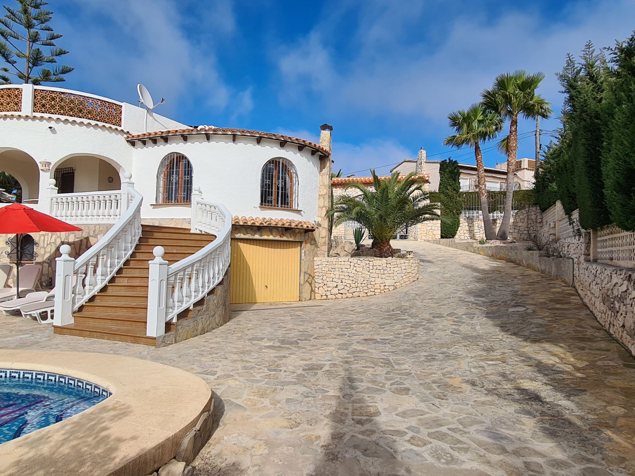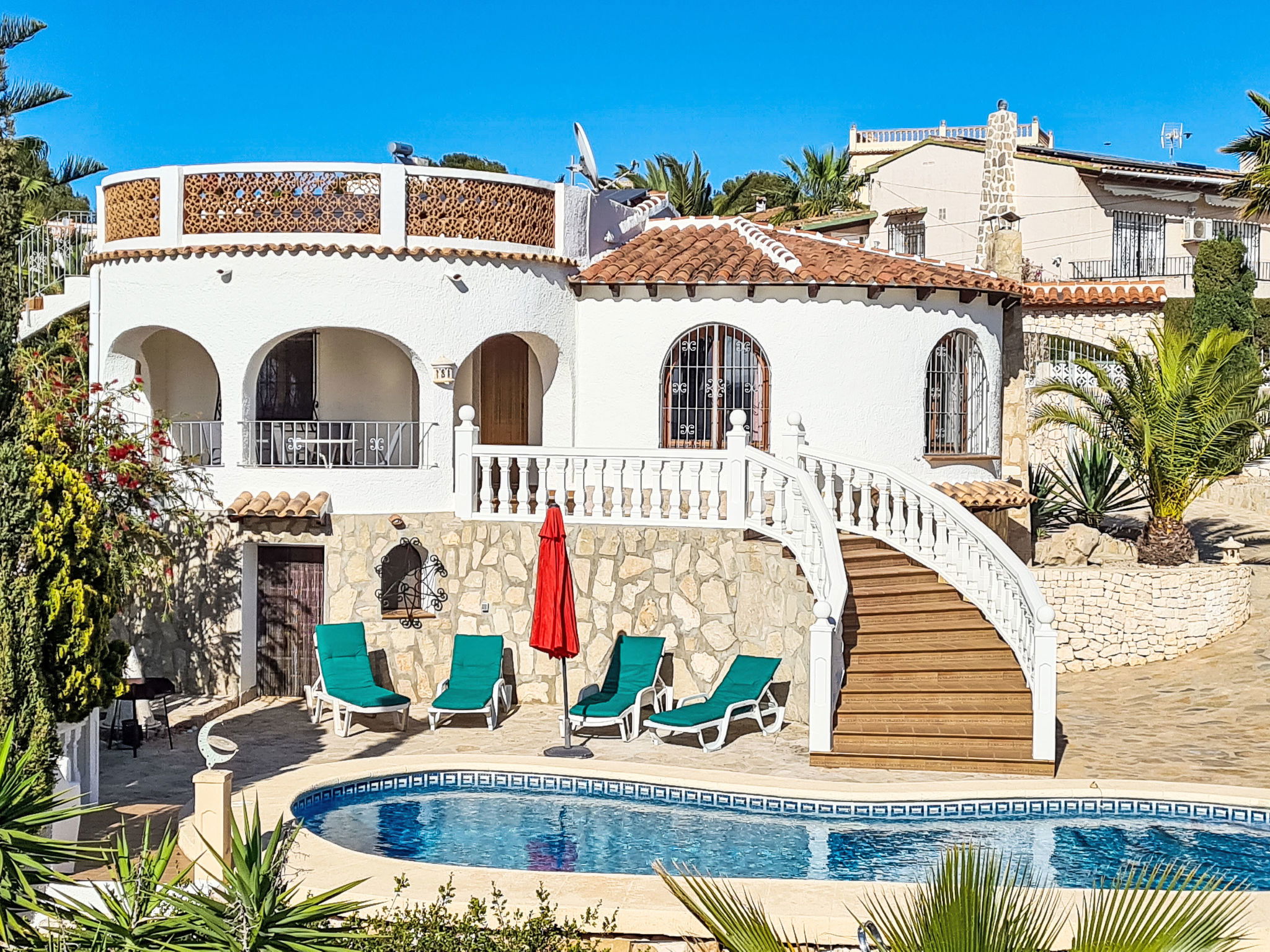 Maison "Zindel". Dans le quartier de Balcon al Mar, à 5 km de la mer. A usage privé: jardin 800 m2 (clôturé) avec plantes, piscine (4 x 9 m, profondeur 150 - 250 cm, disponibilité saisonnière: 01.Jan. - 31.Dec.) avec marches intérieures. Douche extérieure. Infrastructures de la Maison: terrasse sur le toit. Supermarché, restaurant 200 m, arrêt de bus "Toscamar" 3.9 km, plage de sable "Arenal" 8 km plage de graviers "Granadella" 5 km.