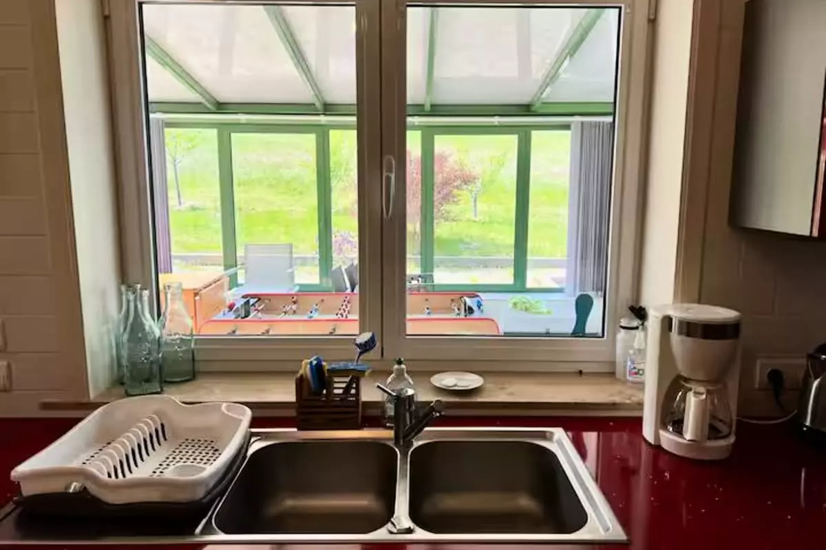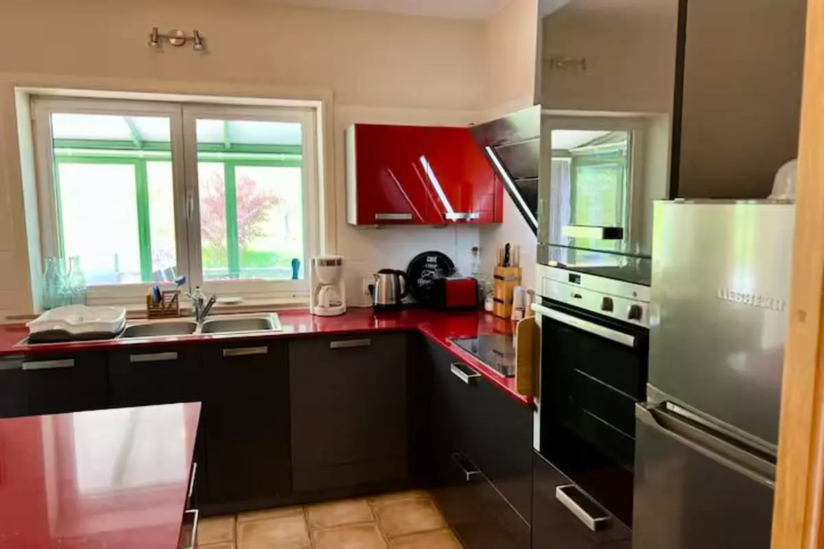 - Cuisine équipée (four, micro-onde, lave vaisselle, cafetière, bouilloire, grille pain, frigo / congélateur)