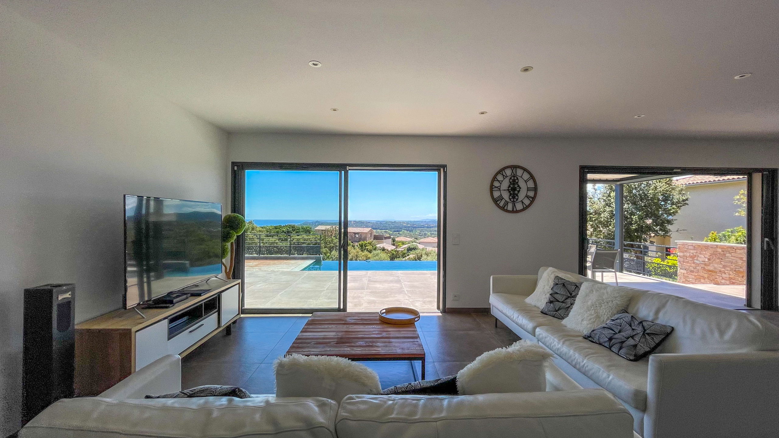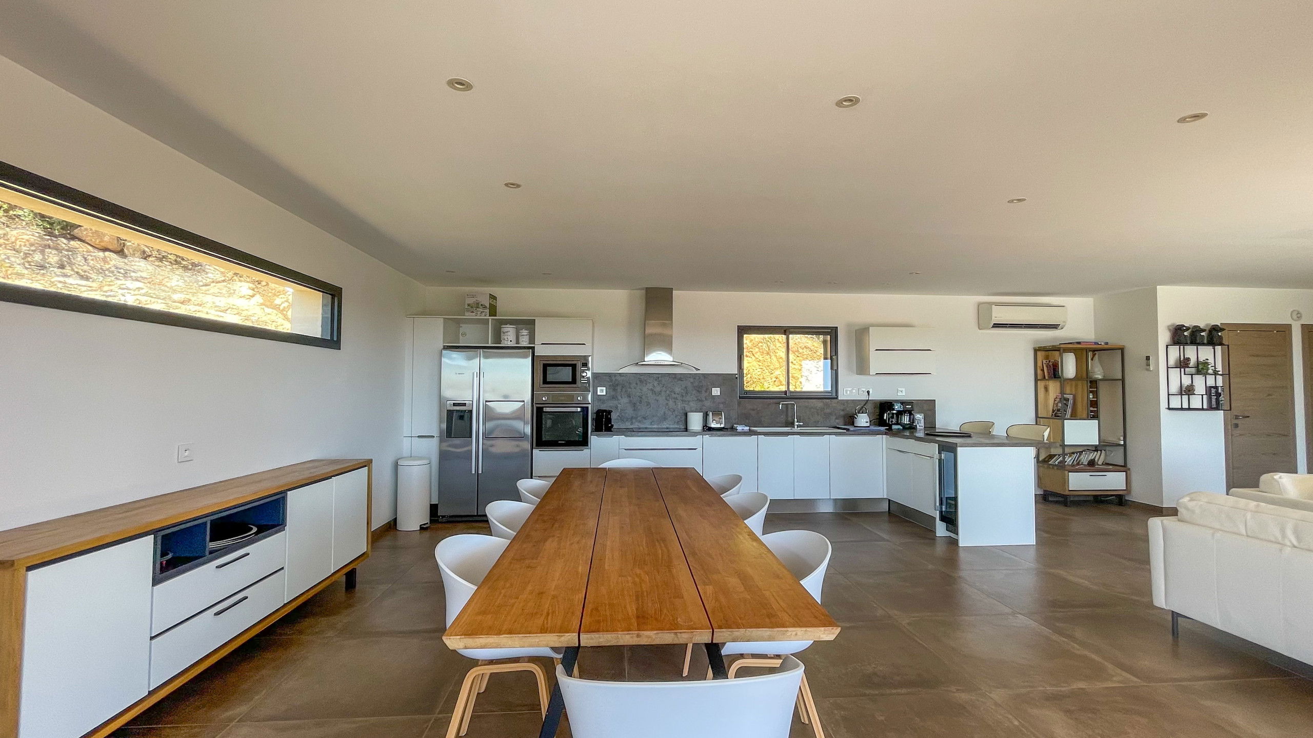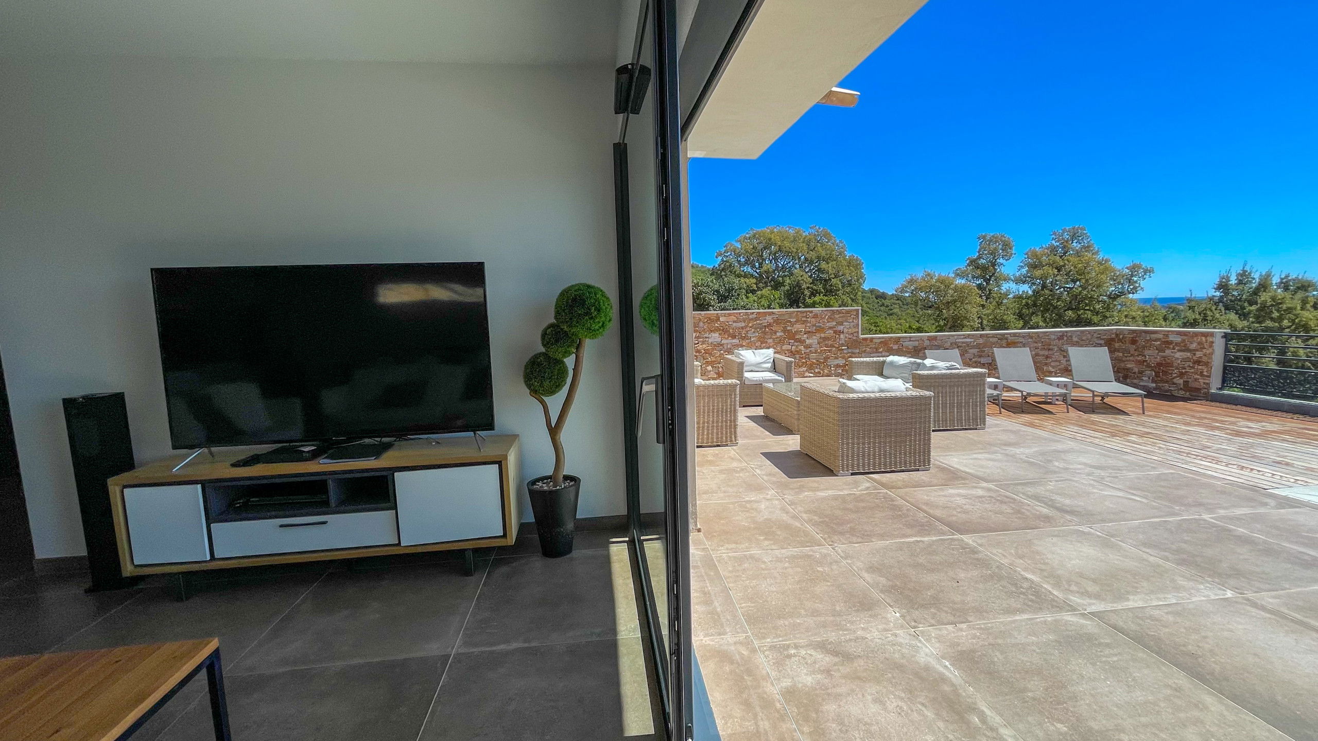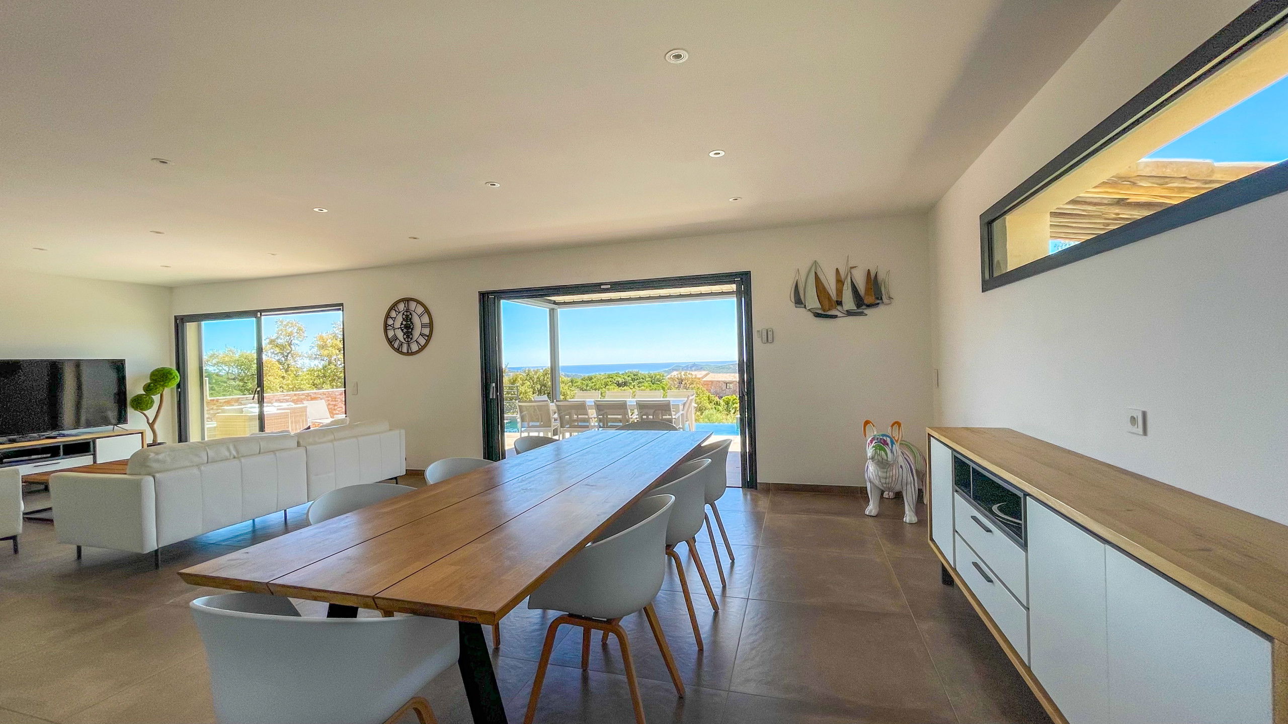 Superbe villa neuve et lumineuse d'environ 170 m2, offrant une splendide vue mer sur la baie de Pinarello et sur les montagnes alentour.