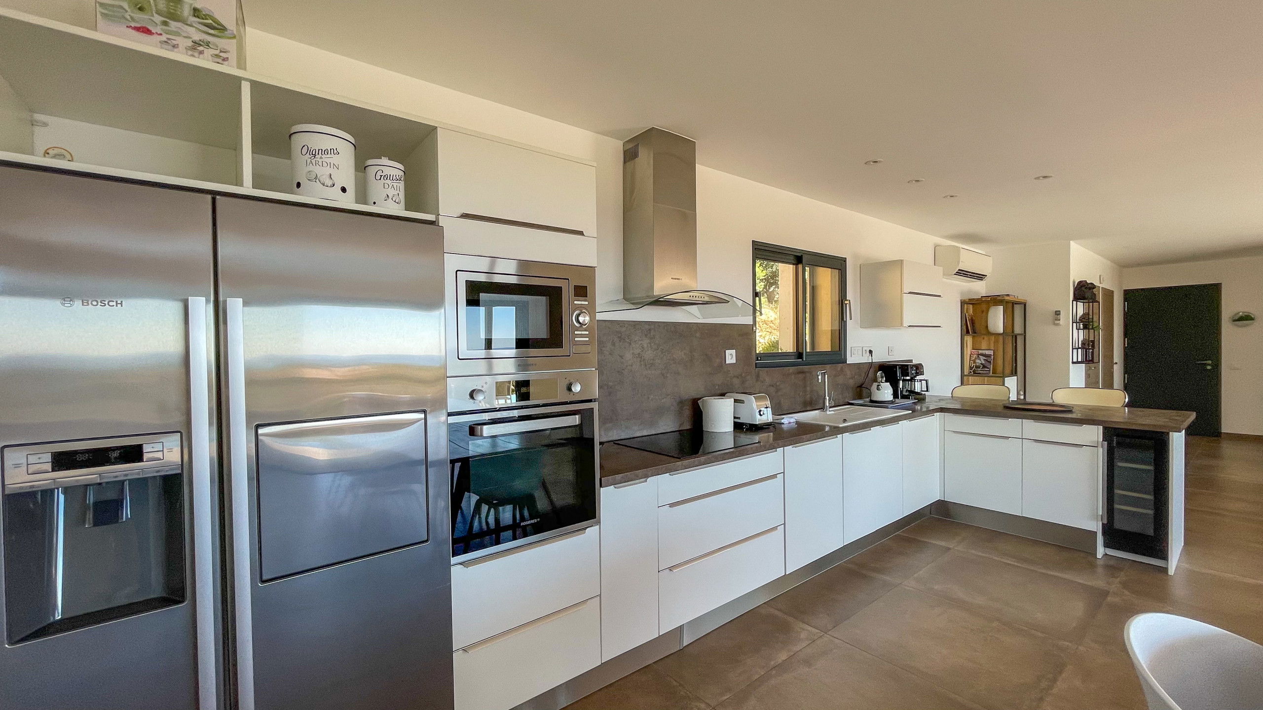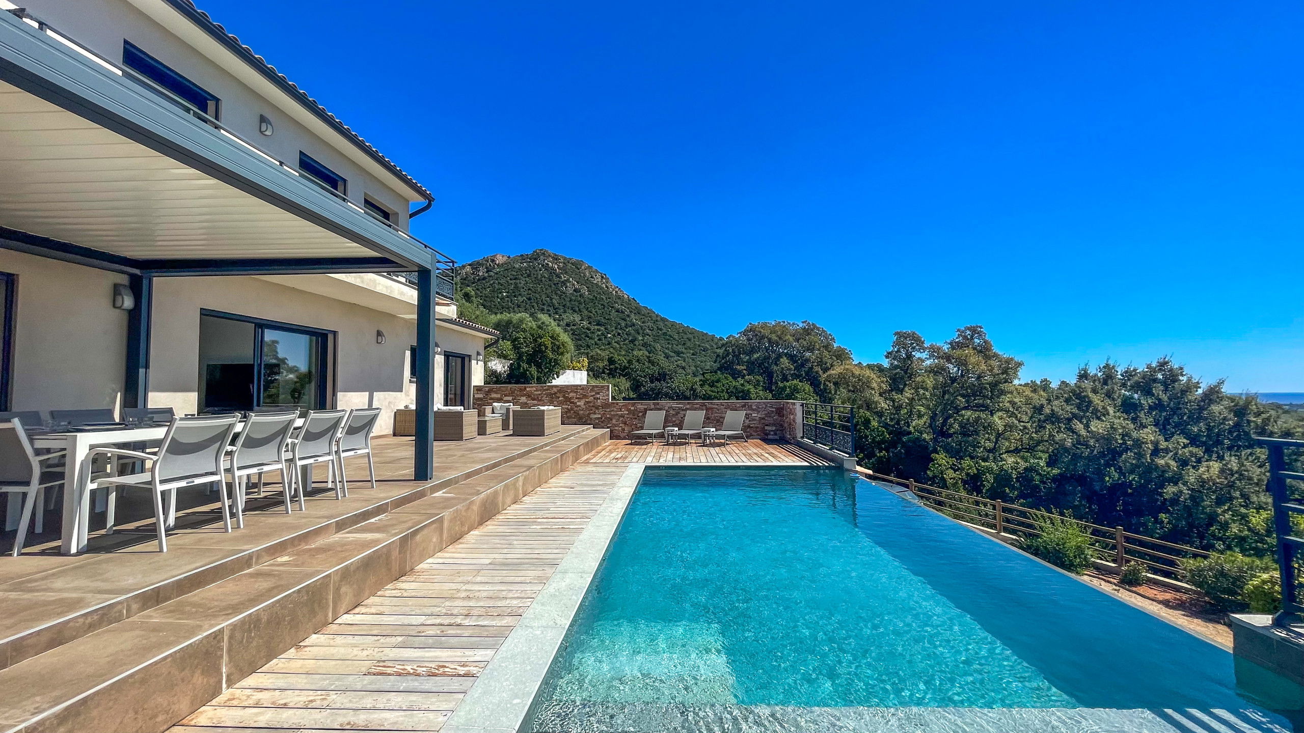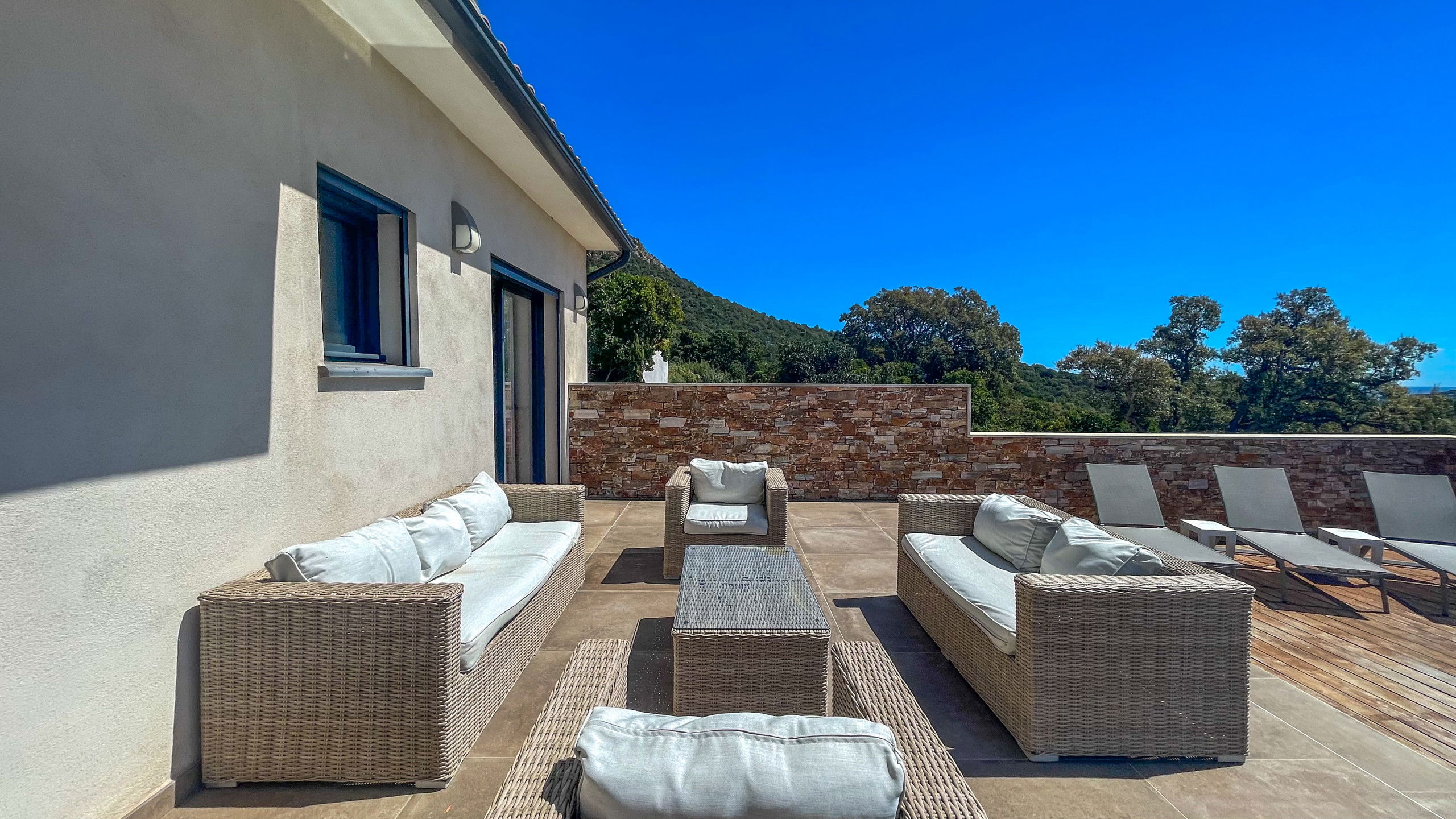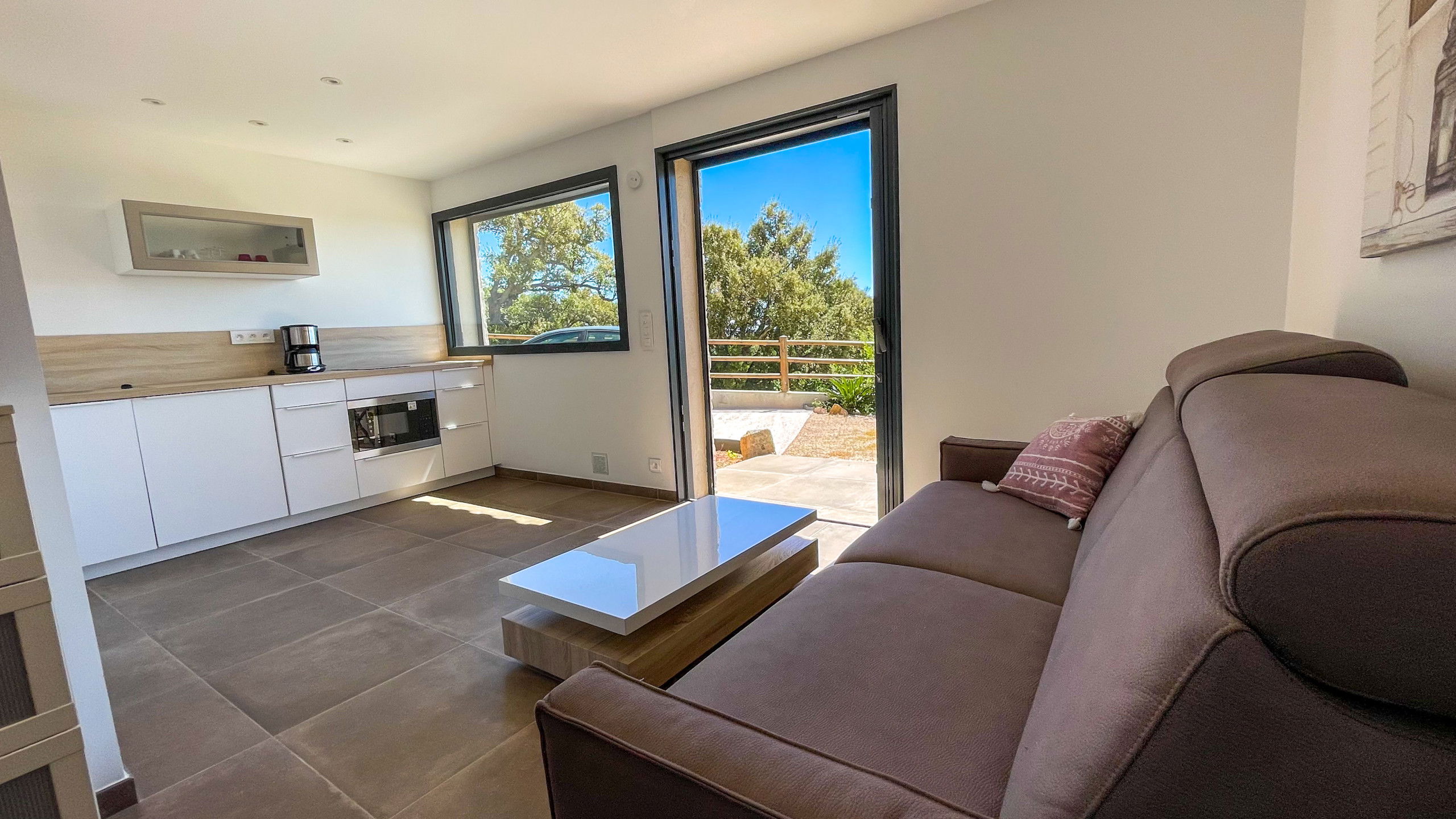 Superbe villa neuve et lumineuse d'environ 170 m2, offrant une splendide vue mer sur la baie de Pinarello et sur les montagnes alentour.