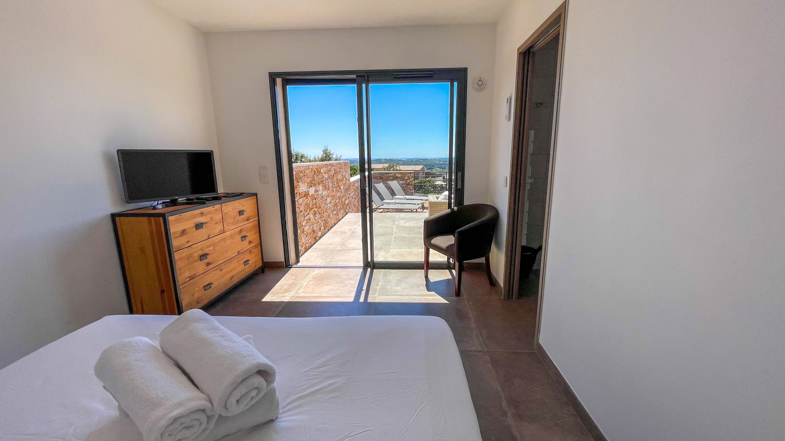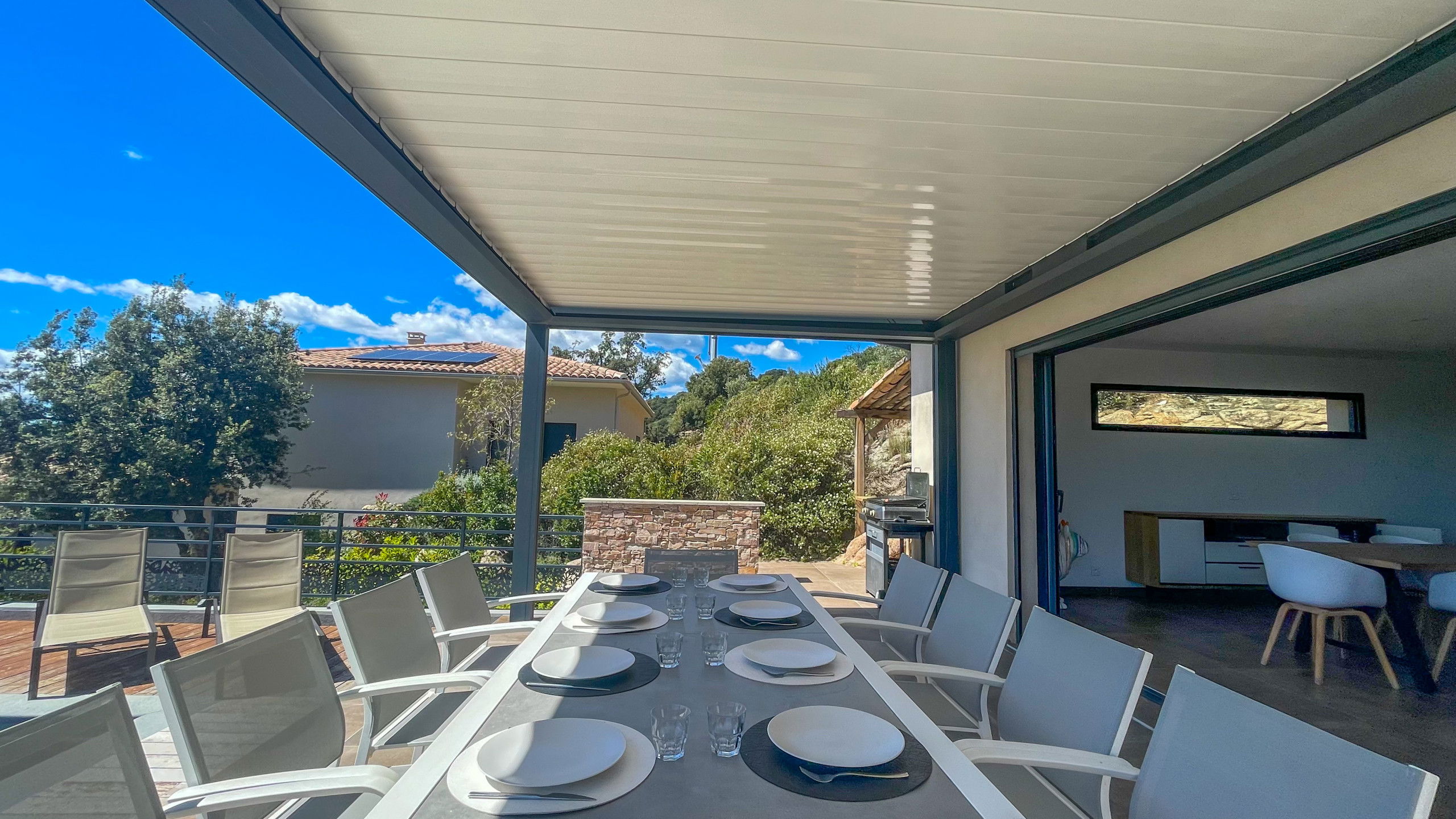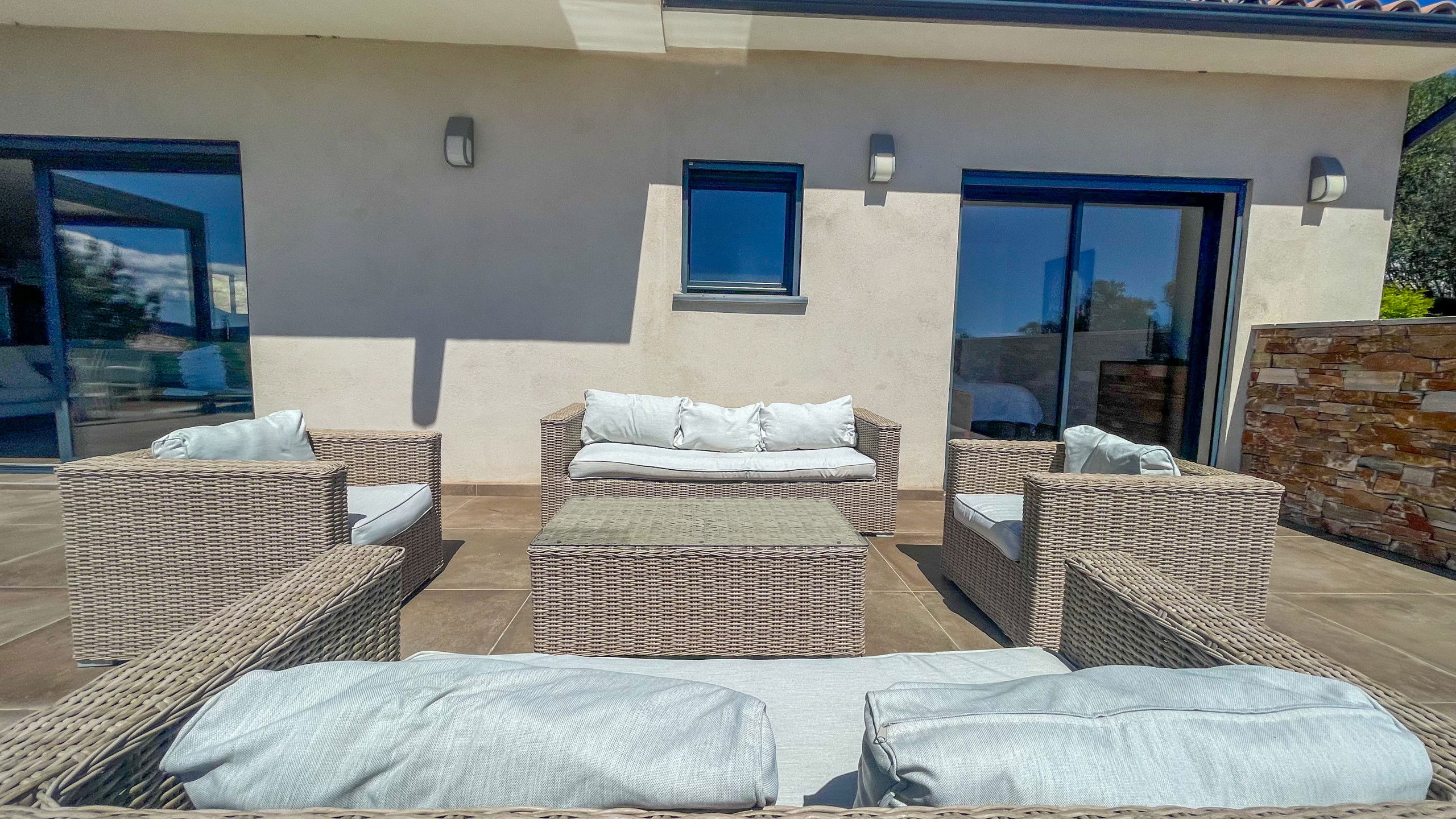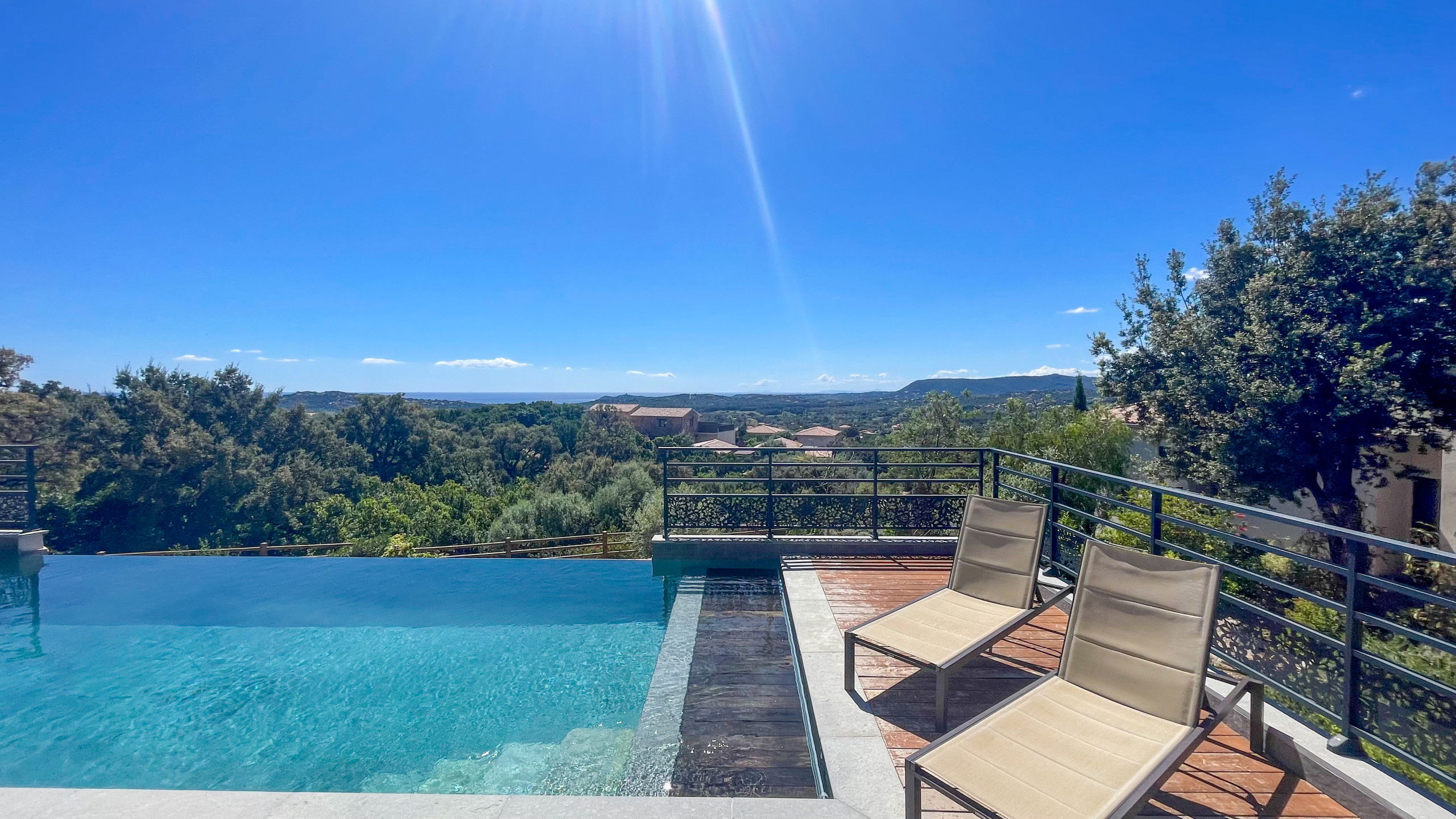 Superbe villa neuve et lumineuse d'environ 170 m2, offrant une splendide vue mer sur la baie de Pinarello et sur les montagnes alentour.