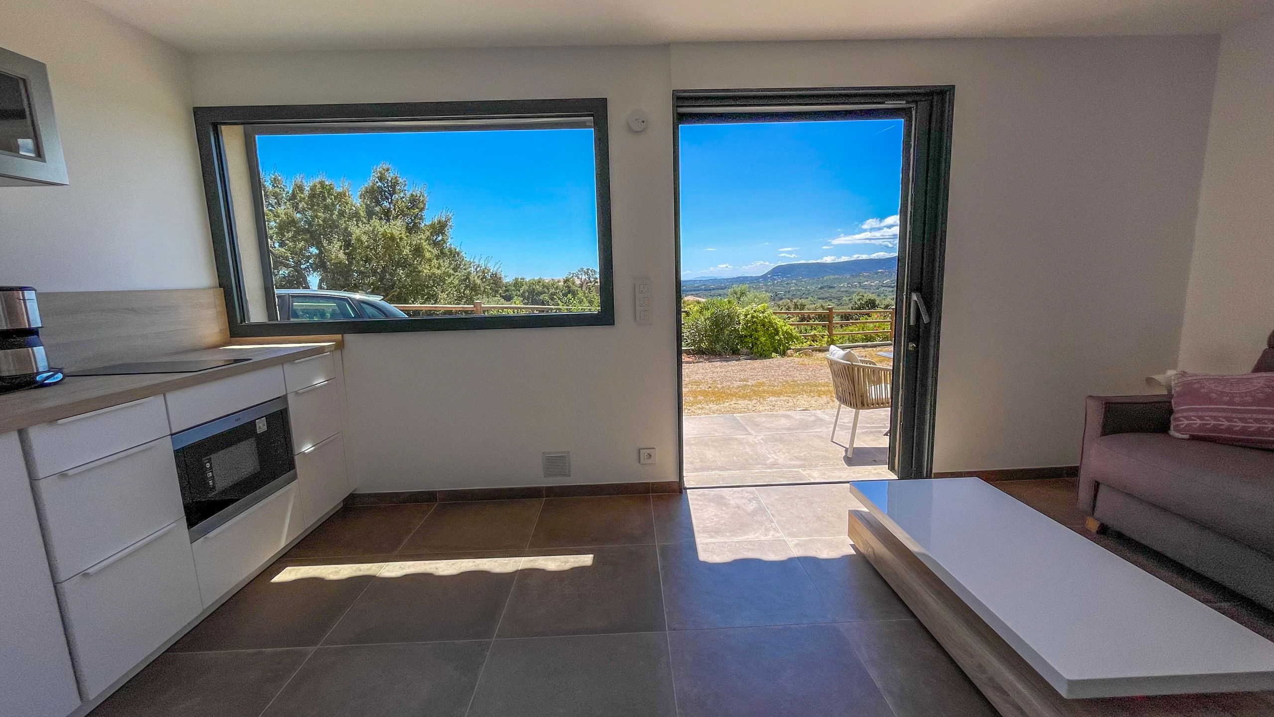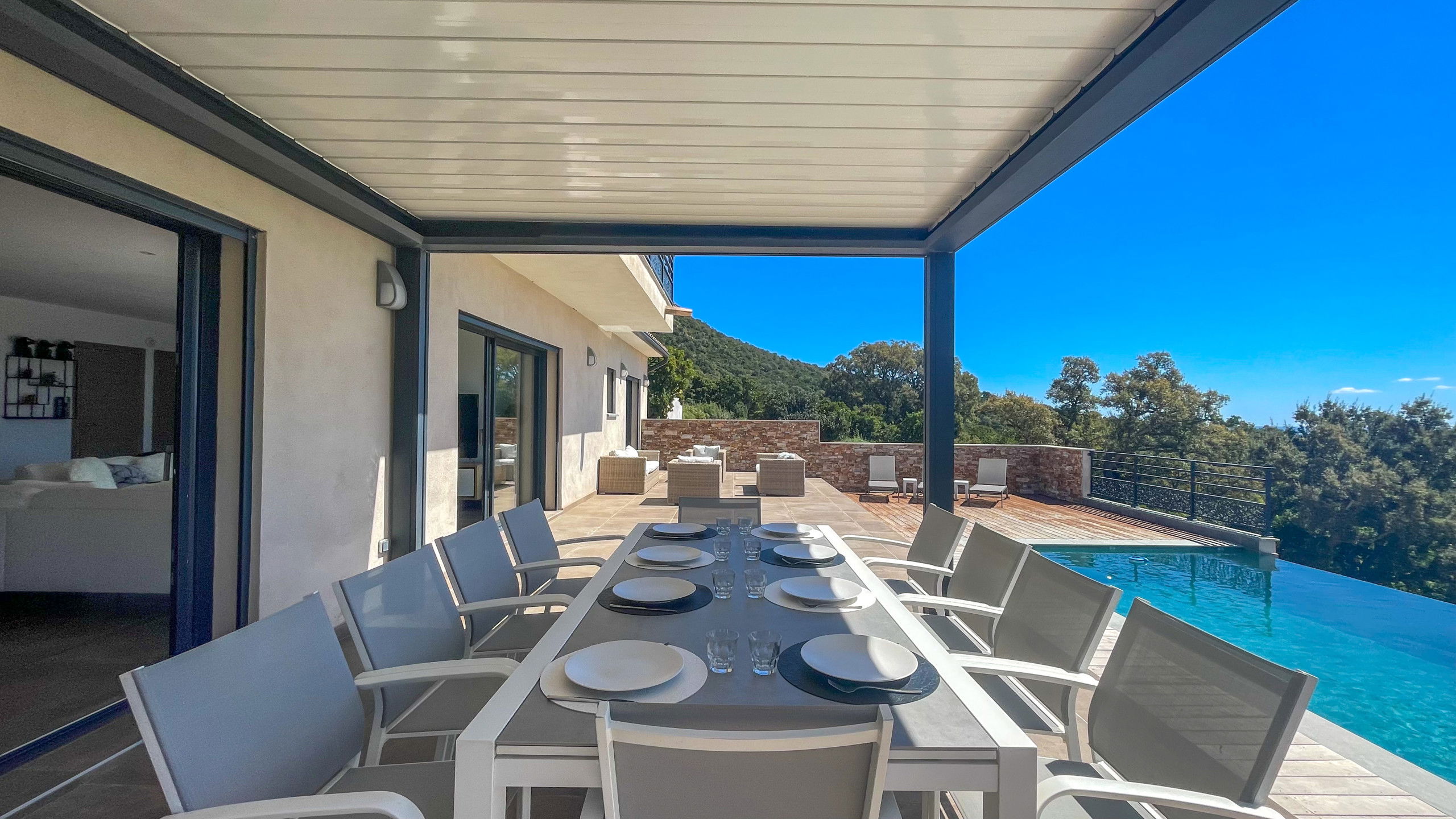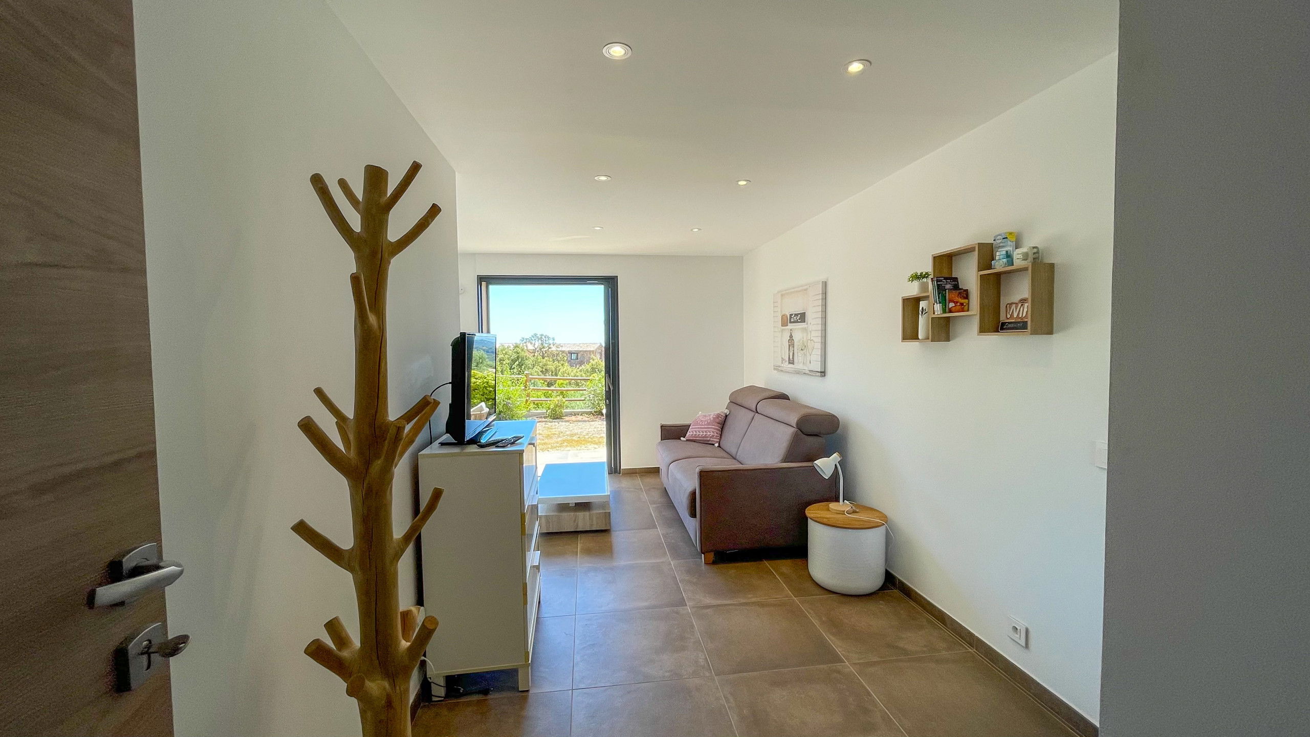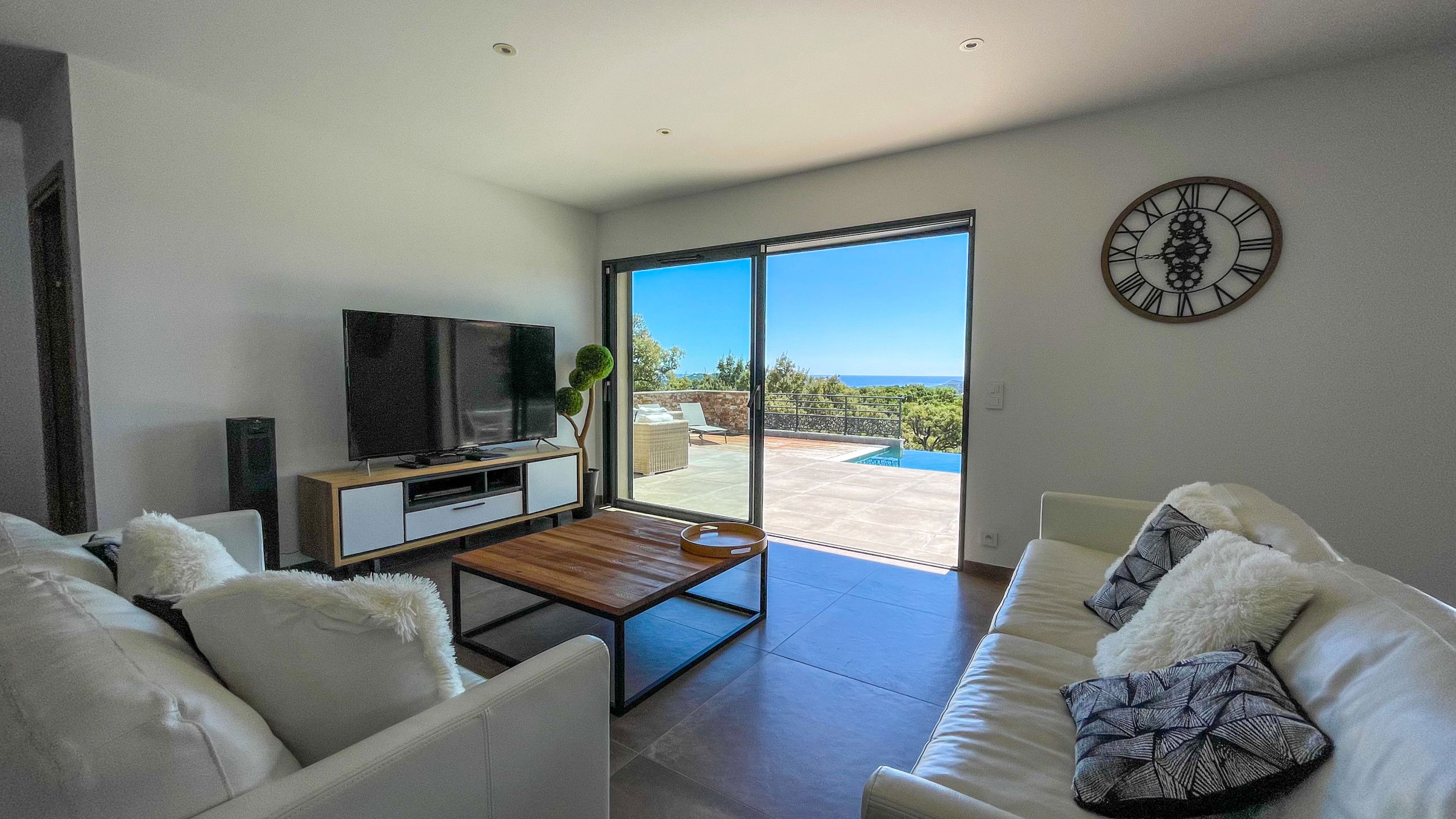Superbe villa neuve et lumineuse d'environ 170 m2, offrant une splendide vue mer sur la baie de Pinarello et sur les montagnes alentour.