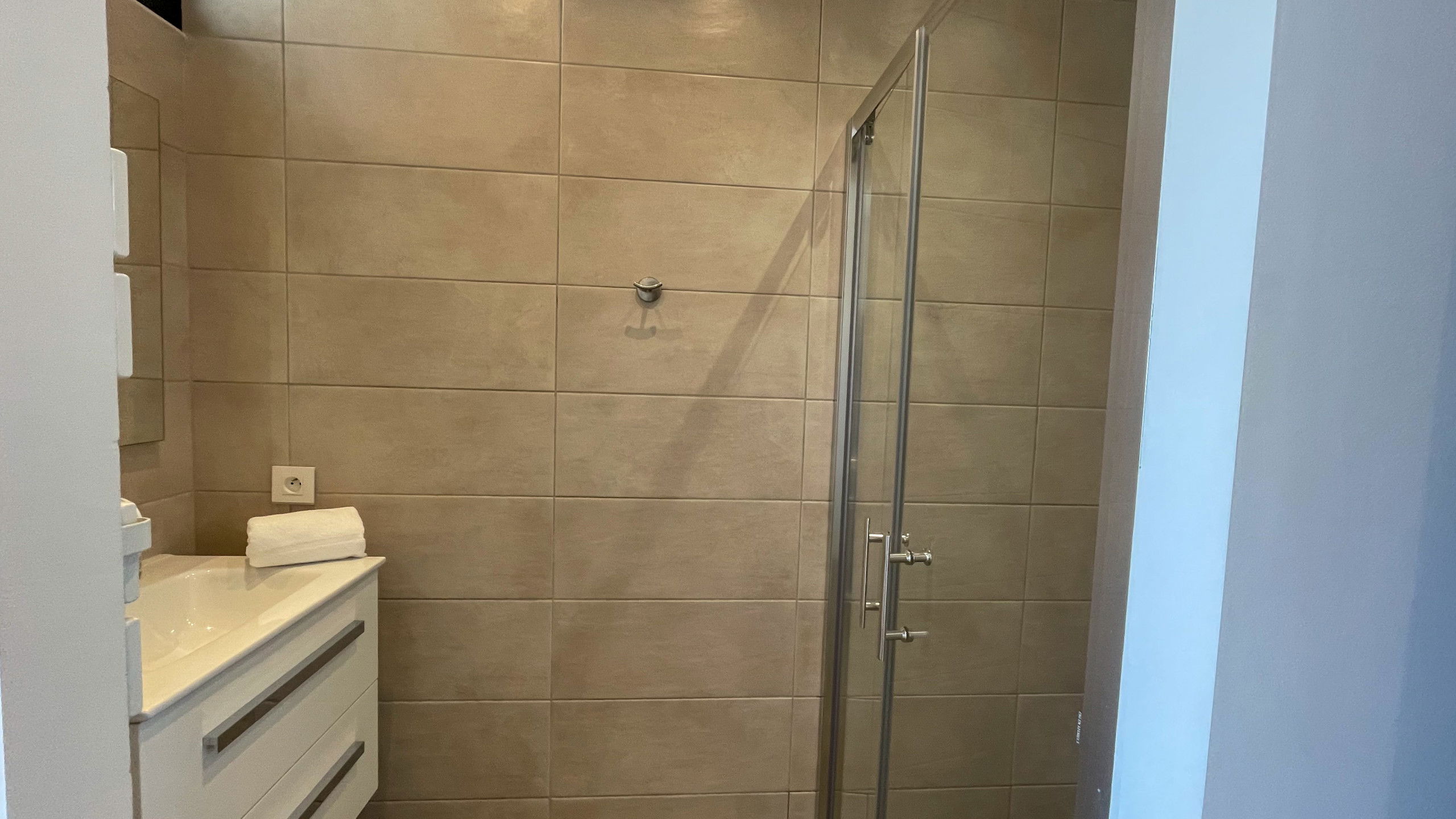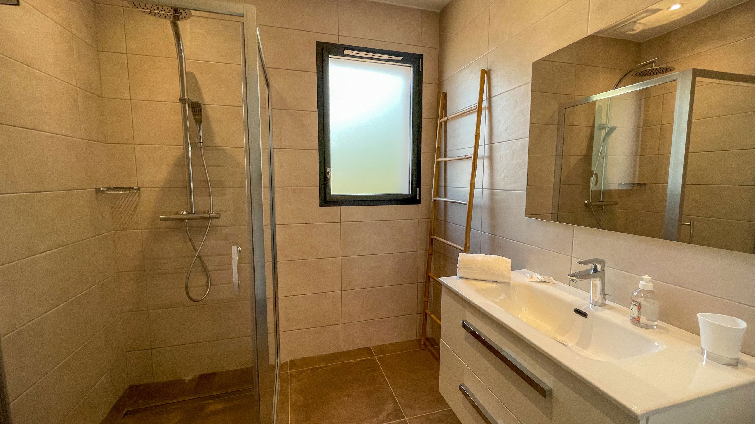 - Chambre 3 : lit double en 160*200 avec placard, salle d’eau, WC et vue mer.