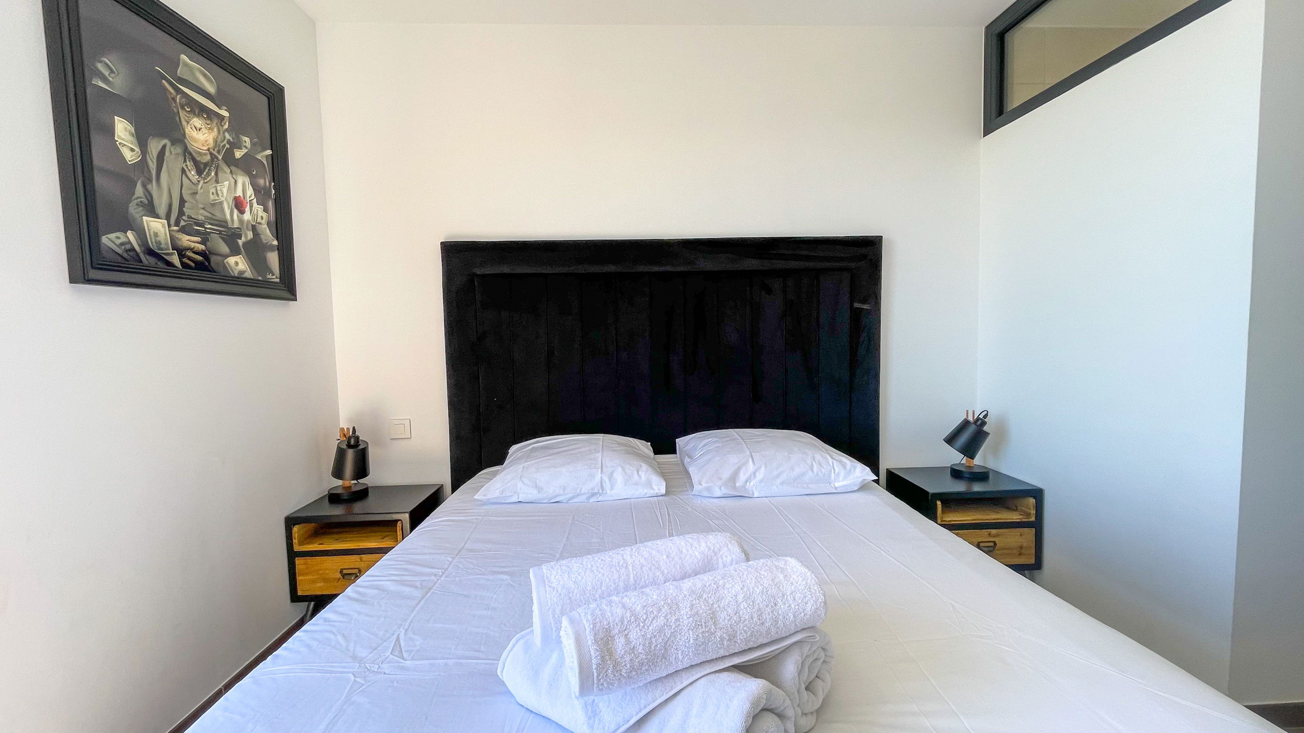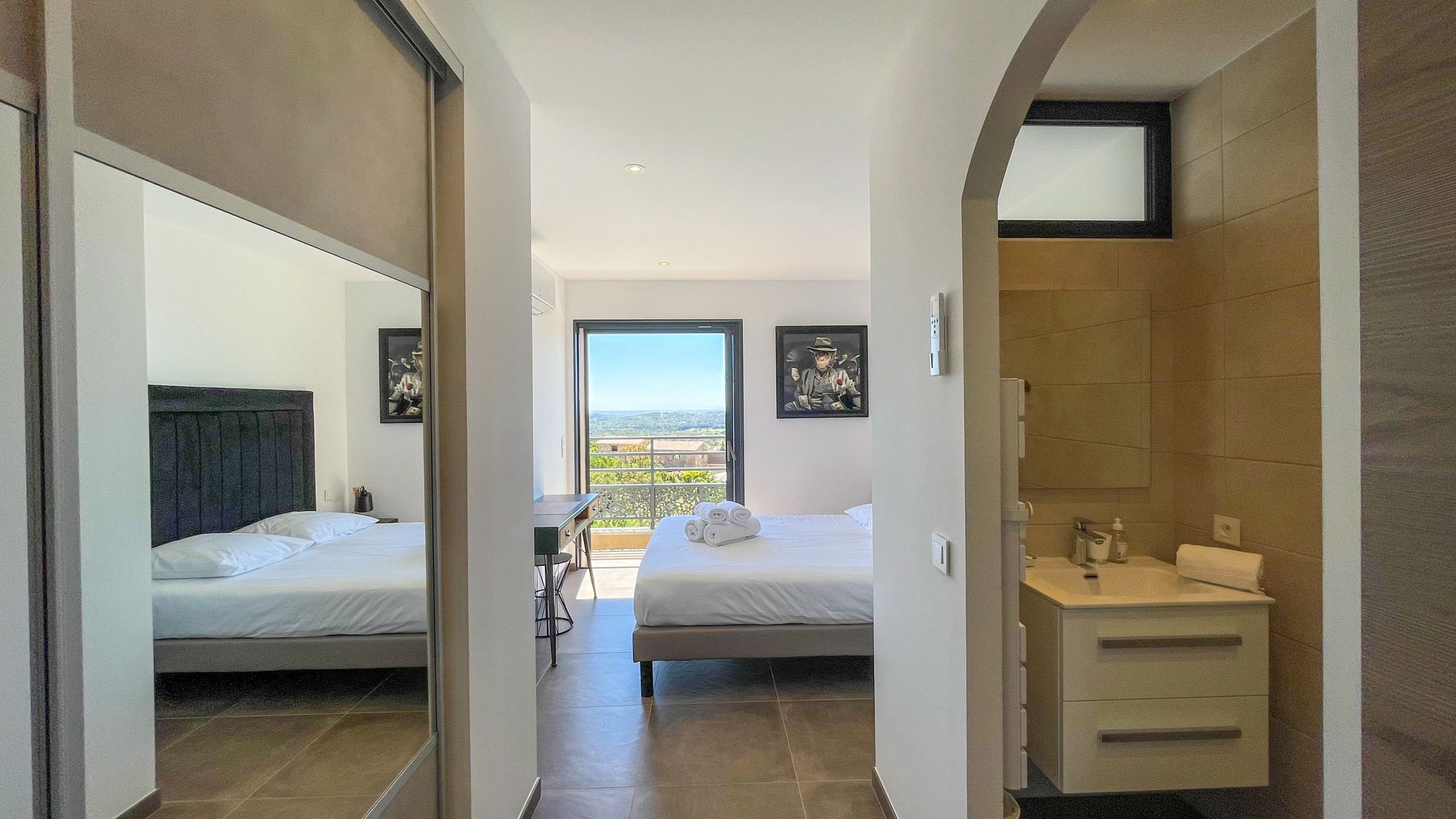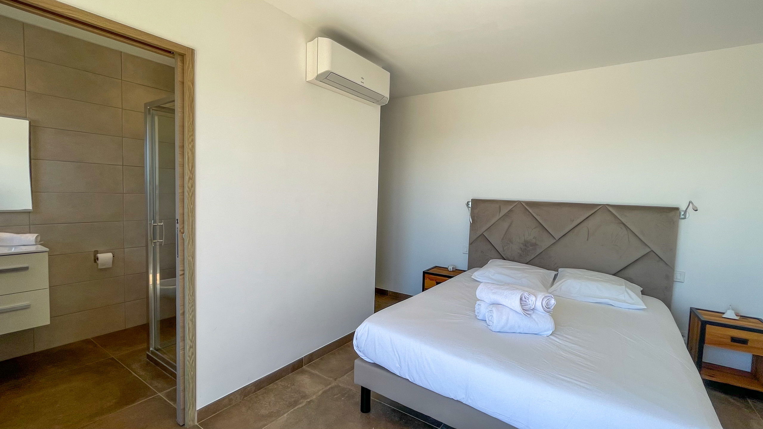 - Chambre 1 : belle suite parentale avec lit Queen size (160 * 200) vue mer, salle d’eau, dressing et WC.